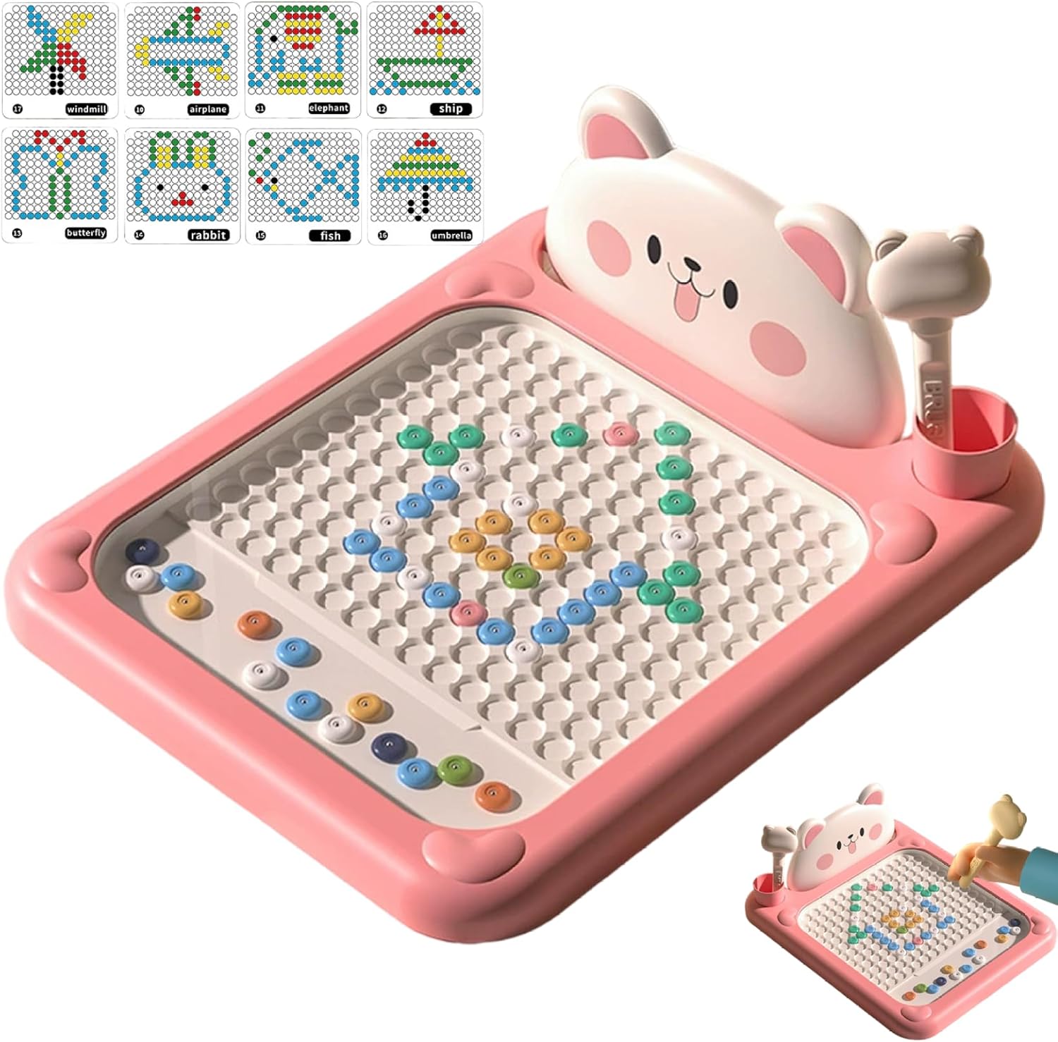 Strumento di creatività magnetica: questo tavolo da disegno magnetico offre ai bambini un modo divertente e senza problemi per creare disegni vivaci utilizzando perline magnetiche, promuovendo l'espressione creativa e il gioco fantasioso Divertimento e sviluppo educativo: progettato come un giocattolo educativo per bambini, migliora le capacità motorie, la coordinazione occhio-mano e lo sviluppo cognitivo attraverso attività artistiche interattive con punti magnetici Portatile e affidabile: realizzata con materiali atossici di alta qualità, questa lavagna magnetica per bambini è leggera e robusta, perfetta per viaggiare e per l'uso quotidiano senza preoccupazioni Scelta dei regali ideali: combinando valore educativo e intrattenimento, questo tavolo da disegno magnetico è un regalo premuroso per neonati e bambini per ispirare l'apprendimento e il gioco gioioso Design intuitivo: dotata di una penna facile da tenere e di opuscoli con modelli inclusi, questa lavagna magnetica per scarabocchi è ideale per consentire ai bambini piccoli di esplorare in modo indipendente il disegno e la creazione di modelli