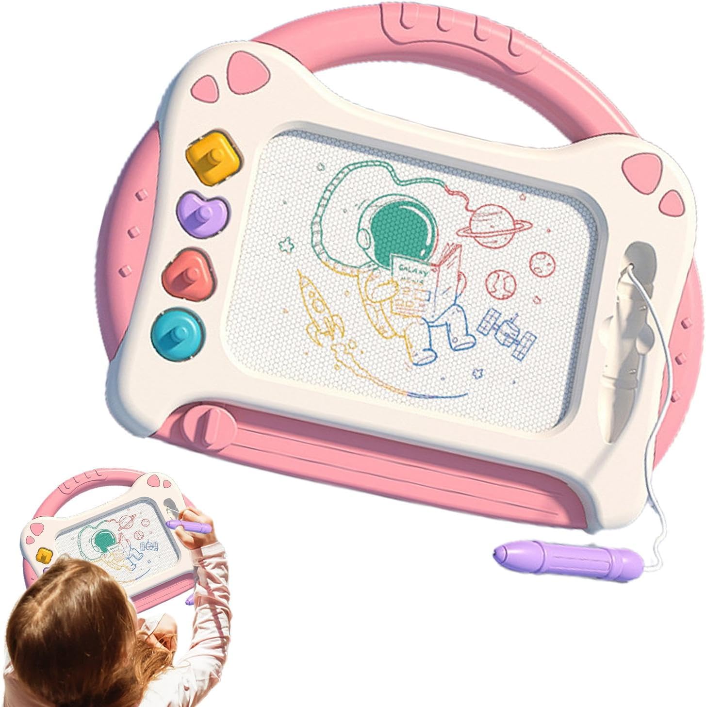 Sollevamento sicuro delle perline: i robusti magneti integrati forniscono un supporto affidabile delle perline, supportano lo sviluppo di abilità artistiche e consentono un design espressivo senza restrizioni Ampio spazio creativo: il tavolo da disegno magnetico con 89 campi griglia offre un ampio palcoscenico per creatività illimitata e ispira la progettazione senza sforzo di intricate opere d'arte Strumento di apprendimento interattivo: stimola le giovani menti con sfide di corrispondenza dei numeri e carte con motivi vivaci per un migliore riconoscimento della forma e una perfetta coordinazione mano-cervello durante il gioco creativo Comodo spazio di archiviazione: lo scomparto integrato garantisce una facile organizzazione dei giocattoli, conserva la penna in modo sicuro, insegna l'organizzazione abitudini e previene la perdita di parti per un'esperienza di gioco senza preoccupazioni. Fascino colorato: questa tavola da pittura magnetica ispira un viaggio creativo alla scoperta con la sua comoda impugnatura e i bordi morbidi, rinforzati da un'intensa varietà di colori e un motivo attraente