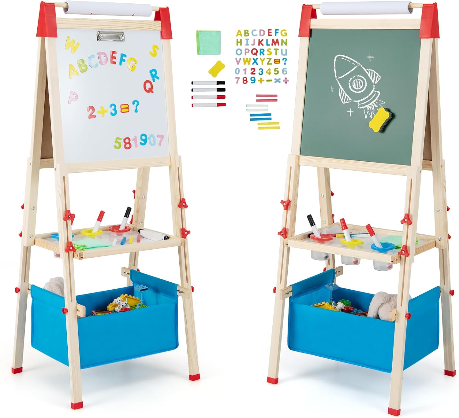 Promuove l'immaginazione: il nostro tavolo da disegno double face di prima qualità vanta una superficie di disegno a lavagna nera su un lato e una superficie di disegno a lavagna sull'altro, rendendo facile per i bambini realizzare graffiti, scrivere o dipingere Design pieghevole, risparmia spazio: appositamente progettato con una funzione pieghevole, questo tavolo da disegno consente di risparmiare spazio piegandosi facilmente dopo l'uso per riporlo in modo compatto Ausilio per la postura adattabile all'altezza: equipaggia il tuo bambino con la soluzione ergonomica perfetta per prevenire il gobbo durante il artistico. L'altezza del nostro tavolo da disegno fronte-retro può essere facilmente regolata per garantire una postura di pittura confortevole e può accompagnare il tuo bambino in ogni fase di crescita. Garantisci un sano sviluppo della colonna vertebrale con l'adattabilità di questo design Stazione creativa definitiva: questo tavolo da disegno per bambini è dotato di una sedia dal design ergonomico con funzione antiscivolo per maggiore sicurezza e comfort. Realizzato con materiali ecologici, vanta una robusta capacità di carico per il massimo supporto Disegno sicuro per le vie respiratorie: proteggi la salute respiratoria del tuo bambino con il nostro tavolo da disegno a doppia faccia che non utilizza gesso antipolvere. Questo giocattolo da lavagna nera per la casa senza polvere garantisce un'esperienza di disegno più pulita e più sana