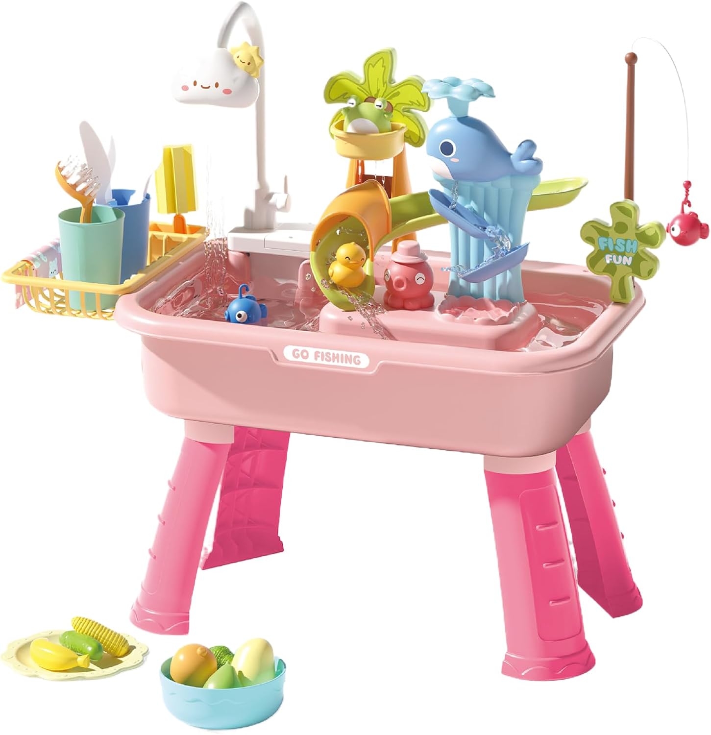 Riduzione del tempo trascorso davanti allo schermo: riduce al minimo il consumo dei media stimolando le attività acquatiche, l'altezza regolabile in tre direzioni supporta la postura naturale e allena in modo giocoso importanti abilità motorie di base. Modalità pioggia simulata: sviluppa un pensiero rispettoso dell'ambiente attraverso un design innovativo. La speciale modalità pioggia con pompa a batteria favorisce l'apprendimento interattivo durante il gioco d'acqua a forma di girasole senza sprechi. Sviluppo delle abilità sensoriali: combina il gioco interattivo con coinvolgenti attività multiruolo come simulazioni di cucina e pesca. Utilizza oltre 20 accessori realistici per creare un giocattolo di apprendimento sensoriale che incoraggia le capacità motorie nel gioco fantasioso. Utilizzo flessibile: consente un'esperienza di gioco coinvolgente con la doppia funzione sabbia-acqua per promuovere la creatività e l'interazione genitore-figlio in giardino, piscina o ambiente spiaggia per ampie applicazioni con valore di gioco educativo Gioco sensoriale acquatico: sviluppa abilità logiche attraverso l'osservazione di percorsi galleggianti e varie attività acquatiche, promuove la progettazione creativa con coinvolgenti esplorazioni fisiche per i bambini.