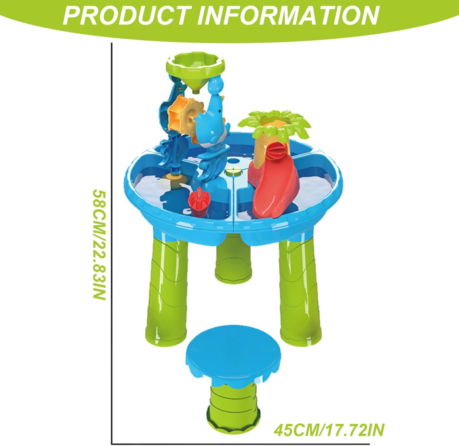 Set di giochi completo incluso: dotato di stampi per animali, scoop, cazzuola, rastrello a mano, secchio, piccola panca e altro ancora, questo set fornisce tutto ciò che il bambino ha bisogno per le avventure pratiche di acqua e sabbia, promuovendo il gioco cooperativo ed esplorazione. Kids Tavol tavolino Perfetto per i bambini e i bambini: progettati con le esigenze di sicurezza e di sviluppo di bambini e bambini piccoli in mente, questa falda di sabbia e acquerelli presenta bordi arrotondati e una struttura stabile che garantisce un gioco sicuro e contenuto. Divertimento all'aperto: realizzato con materiali robusti e resistenti alle intemperie, questo tavolo dell'acqua e della sabbia resiste al sole, all'acqua e al gioco approssimativo, rendendolo perfetto per i giorni in spiaggia estiva, divertimento a bordo piscina o intrattenimento nel cortile. Tavolo da gioco d'acqua e sabbia Easy Assembly & Stanza Coinvolgimento del design 3 in 1: questa falda acquifera per bambini combina 3 compartimenti, incoraggiando l'apprendimento fantasioso e multi-sensoriale in un giocattolo versatile..Il suo design modulare mantiene i bambini intrattenuti per ore, promuovendo la creatività e lo sviluppo delle abilità motorie.
