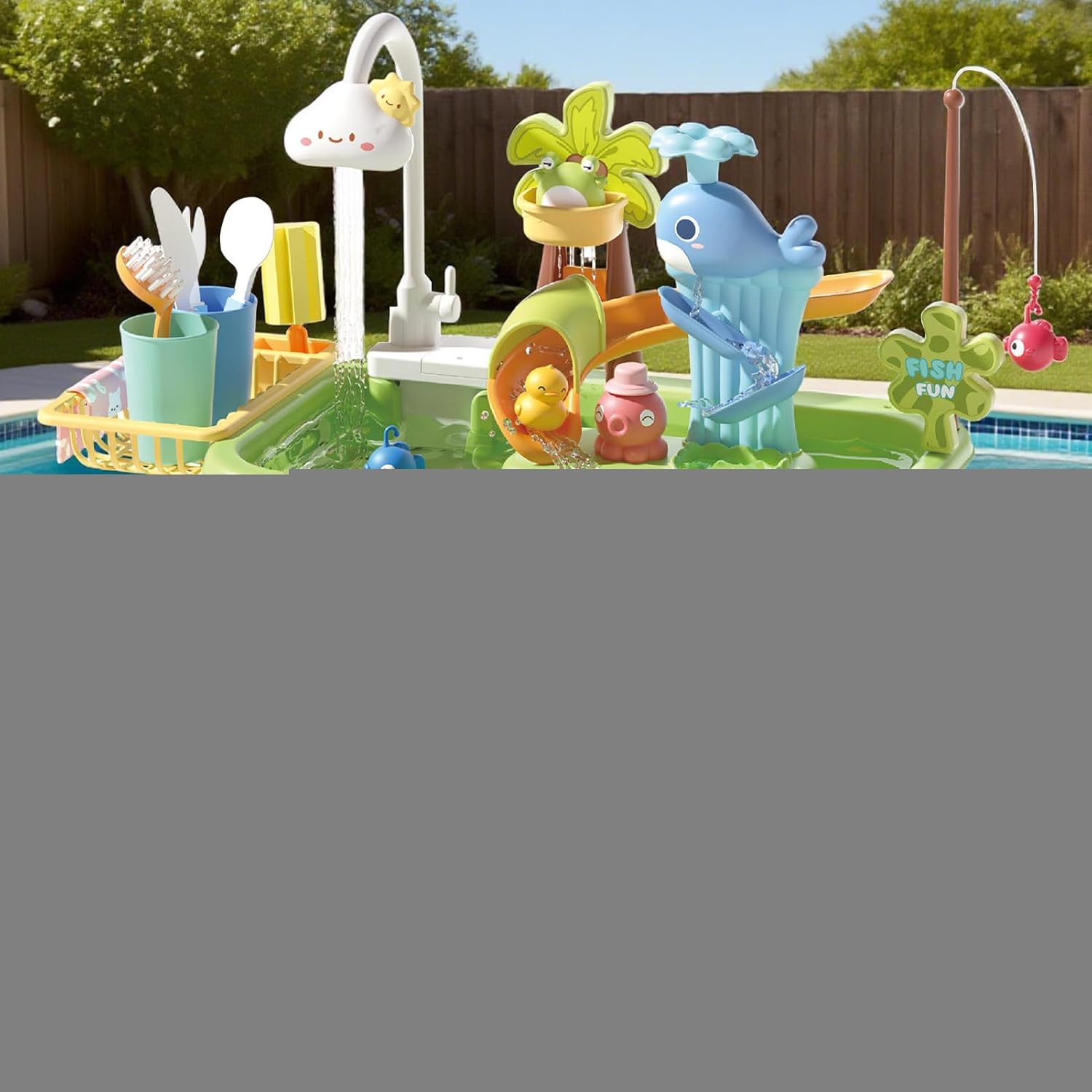 Sicurezza: gli angoli arrotondati e la struttura a prova di bambino garantiscono un gioco sicuro. La robusta guarnizione impermeabile impedisce perdite per un divertimento senza preoccupazioni sul tavolo da gioco dei bambini. Versatile gioco d'acqua: la disposizione modulare e la superficie di gioco espandibile consentono una varietà di temi flessibili e semplificano la gestione dell'acqua Promuovere il contenuto della famiglia: divertimento duraturo grazie agli accessori completi supporta il legame genitore-figlio e fornisce scivolo interattivo e modalità di gioco di ruolo per i bambini sul tavolo da gioco d'acqua. Giochi d'acqua intelligenti: il sistema di pompaggio multifunzionale produce un'efficiente circolazione dell'acqua a 360 gradi. Permette di giocare facilmente e supporta esperienze di gioco d'acqua attive e coinvolgenti grazie alle prestazioni user-friendly. Esperienza di apprendimento interattivo: migliora lo sviluppo cognitivo attraverso giochi di ruolo come la pesca e il lavaggio, offre coinvolgenti attività di giochi d'acqua con scenari realistici per promuovere la scoperta e rendere divertenti i giochi educativi.