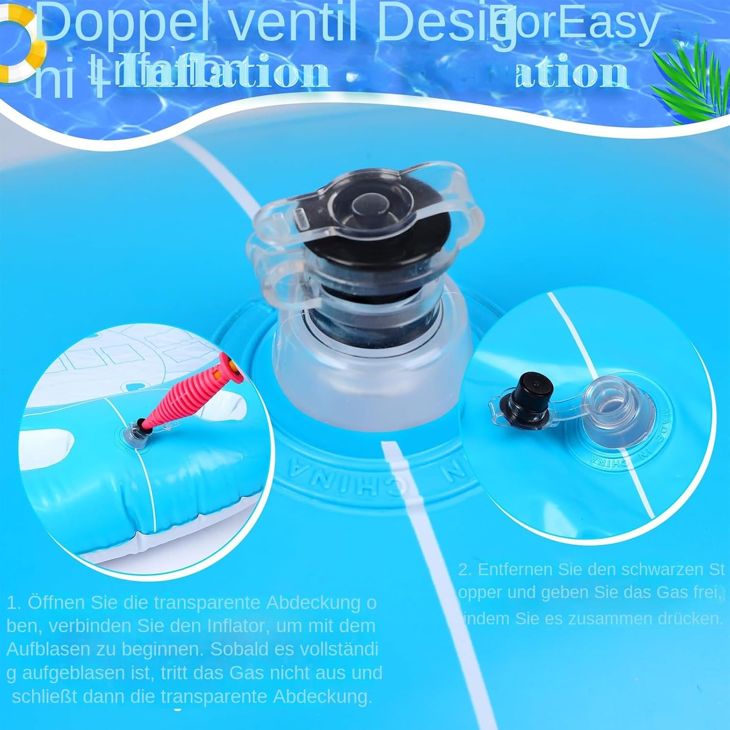 Qualità resistente allo sporco: il materiale speciale con effetto anti-impronte mantiene la pulizia visiva - costruzione facile da pulire per un divertimento duraturo Resistenza comprovata: la costruzione in PVC resistente alle intemperie resiste all'acqua clorata e agli agenti ambientali, garantisce anni di divertimento senza fatica del materiale Scenari di utilizzo universali: perfettamente adattati alle attività ricreative al mare, in giardino, sul balcone o sul bordo della piscina. La superficie antiscivolo e la facilità di trasporto rendono ogni evento un'esperienza. Design adatto al gruppo: la piattaforma di gioco di grandi dimensioni con robuste maniglie consente fino a 4 persone contemporaneamente emozionanti giochi da tavolo o drink in acqua – ottimizzata per il tempo libero interattivo in piscina Design leggero: solo 8,5 kg di peso totale con gambe in alluminio pieghevoli compatte, maniglia di trasporto ottimizzata per un trasporto senza fatica, la valvola di sfiato automatica consente lo svuotamento in 90 secondi