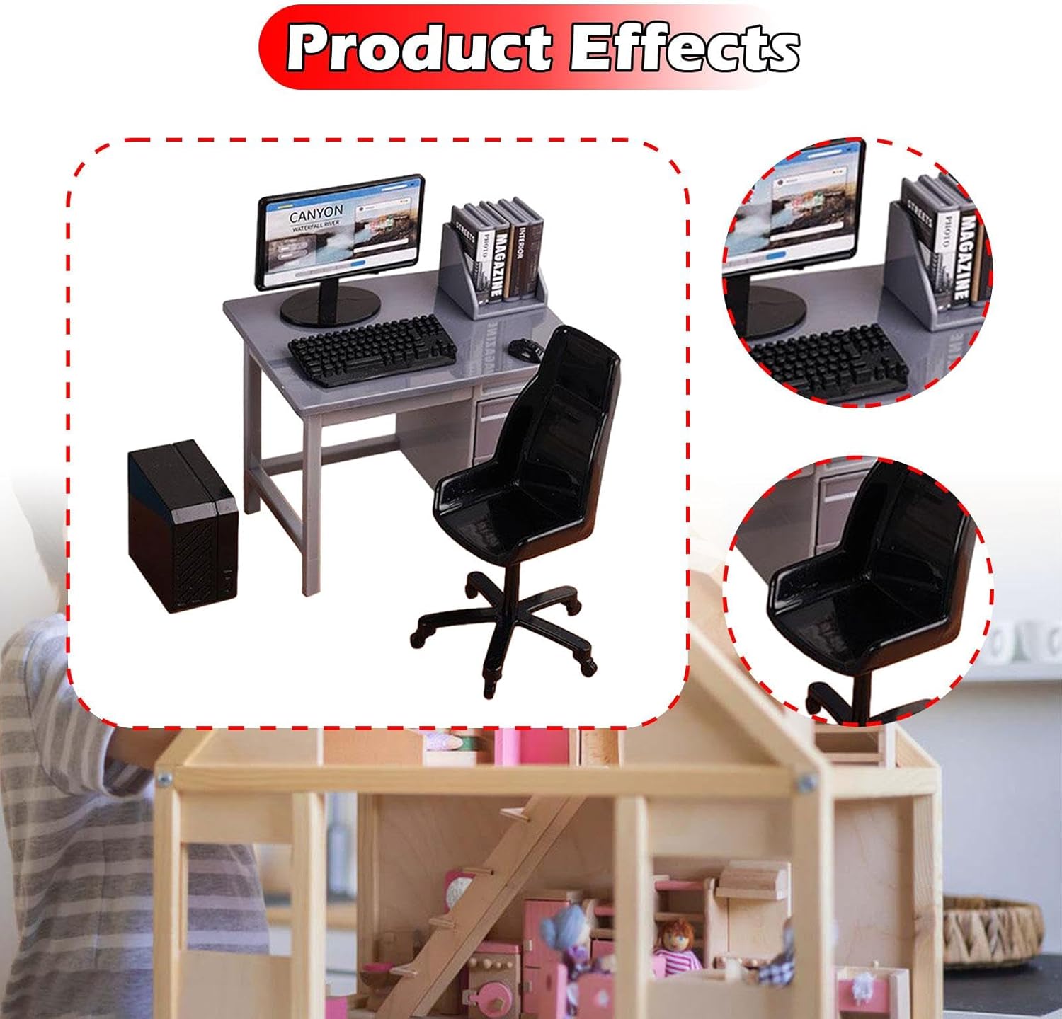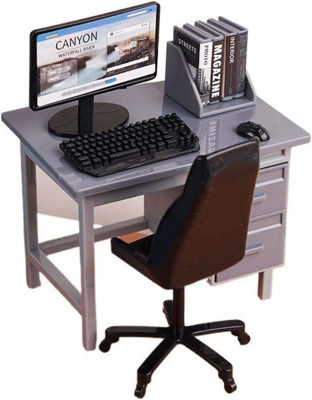 【Supporto per la decorazione della sala studio】 Set di mini sedie da scrivania. Include un modello di computer, un modello di scrivania, un modello di sedia, una cartella di file e un modello di tastiera. Multiuso: i giocattoli da tavolo da gioco in miniatura sono adatti per giocattoli paesaggistici sandbox, modellini ferroviari, modelli architettonici, giardini fatati, micro paesaggi, modelli di scene fai-da-te. Materiale: tutti i modelli di mobili in miniatura sono realizzati con materiali di alta qualità, consentendo layout creativi della stanza e giochi fantasiosi. Fai da te per divertimento: il modello di mini sedia da scrivania può essere combinato in diverse scene per, tavolino da caffè e giardino fatato come preferisci. 【Alto dettaglio】: modello in miniatura della sedia da scrivania del computer in scala 1:12, ricco di dettagli, che aggiunge un tocco realistico alla scena del micro paesaggio