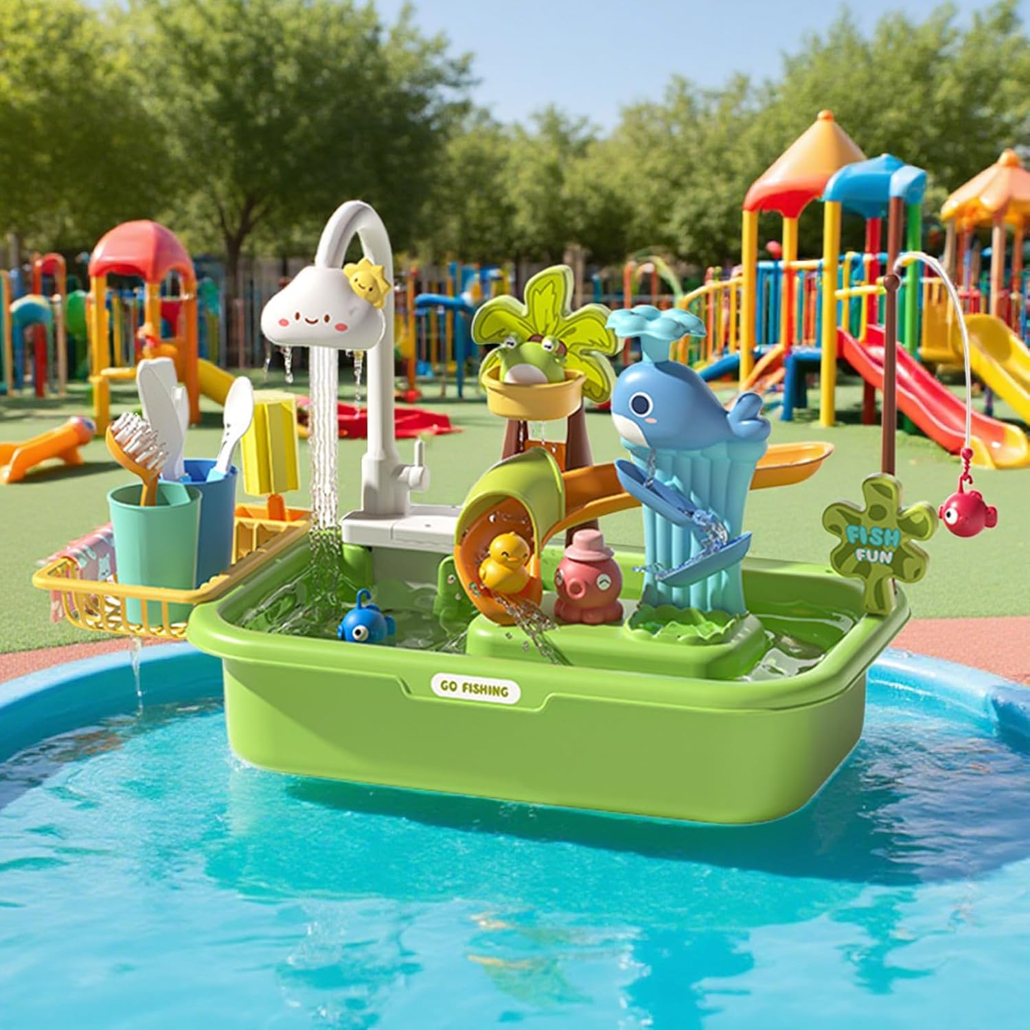 Circolazione efficiente 'acqua: con un multifunzionale con potenza della pompa elettrica per il riciclaggio 'acqua a 360 gradi, garantendo un uso regolare e una facilità d'uso durante il gioco, massimizzando il divertimento e l'impegno interattivo Play di scenari coinvolgenti: promuove lo sviluppo cognitivo attraverso compiti simulati di e lavaggio, fornendo un ambiente di gioco riccamente immersivo con scenari di vita reale che ispirano la creatività alla falda dei bambini Layout espandibile: con spazio espandibile e layout del bacino modulare, questa falda acquifera per bambini supporta l'adattabilità multi-tema, offrendo al contempo un drenaggio e lo stoccaggio efficienti per il divertimento senza soluzione di continuità Sicuro e innocuo: angoli arrotondati e una struttura di interazione sicura garantisce un gioco sicuro, mentre il sigillo a prova di perdita impedisce le fuoriuscite per il divertimento senza preoccupazioni durante le attività della falda acquifera Migliora i legami familiari: ricchi, slittamento versatile e modalità di gioco di ruolo incoraggiano l'apprendimento duraturo e giocoso, rafforzando al contempo il genitore-figlio in modo pratico