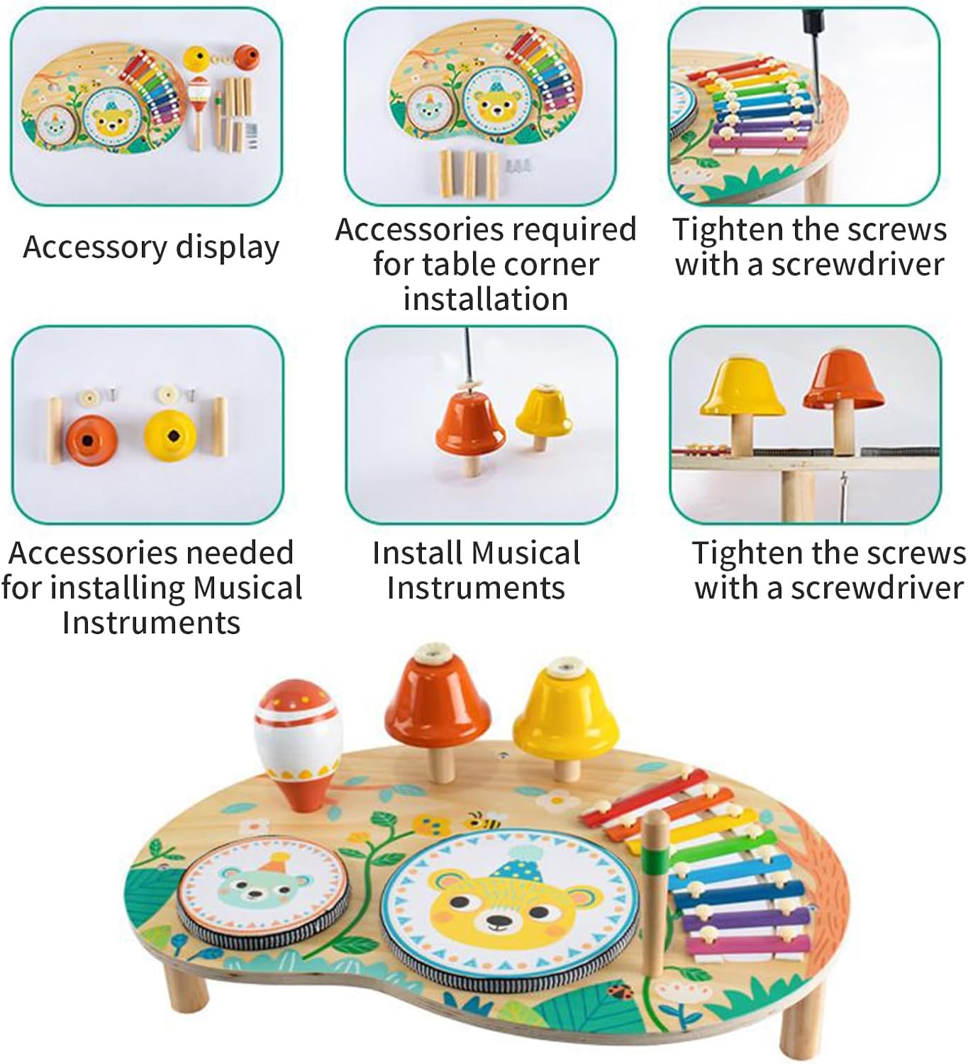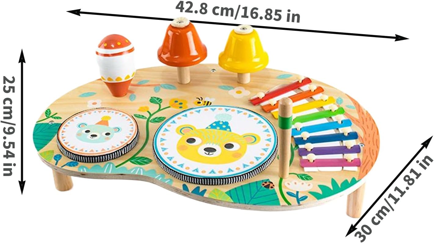 Esplorazione multisensoriale: promuove il risveglio dei sensi uditivi, visivi e tattili durante il gioco per incoraggiare l'integrazione sensoriale e sostenere lo sviluppo del pensiero logico in modo giocoso e interattivo Risveglio multi-attività: questo tavolo sensoriale combina gioco e istruzione tramite un tamburo e uno xilofono che risvegliano al ritmo e migliorano la coordinazione occhio-mano. Garantisce una stimolazione dell'udito e tattile attiva in un ambiente di gioco creativo progettato per i più piccoli. Fiducia in Sicurezza: compagno di risveglio ideale concentrato sullo sviluppo di abilità motorie fini. Accompagna il modo naturale di afferrare gli oggetti in una cornice sicura, rinforzata da una solida cornice e dettagli con bordi arrotondati adatti a. Divertimento interattivo: fonte di risate e complicità durante le feste. Procurando la felicità immediata, questo tavolo da gioco interattivo suscita situazioni divertenti mentre coltiva la loro immaginazione durante le sessioni di gioco collettivo o individuale, per ricordi memorabili. Strumento educativo accattivante: stimola l'identificazione dei colori fondamentali e delle gamme musicali sviluppando il risveglio artistico e le capacità cognitive in modo giocoso, ideale per lo sviluppo precoce del bambino.