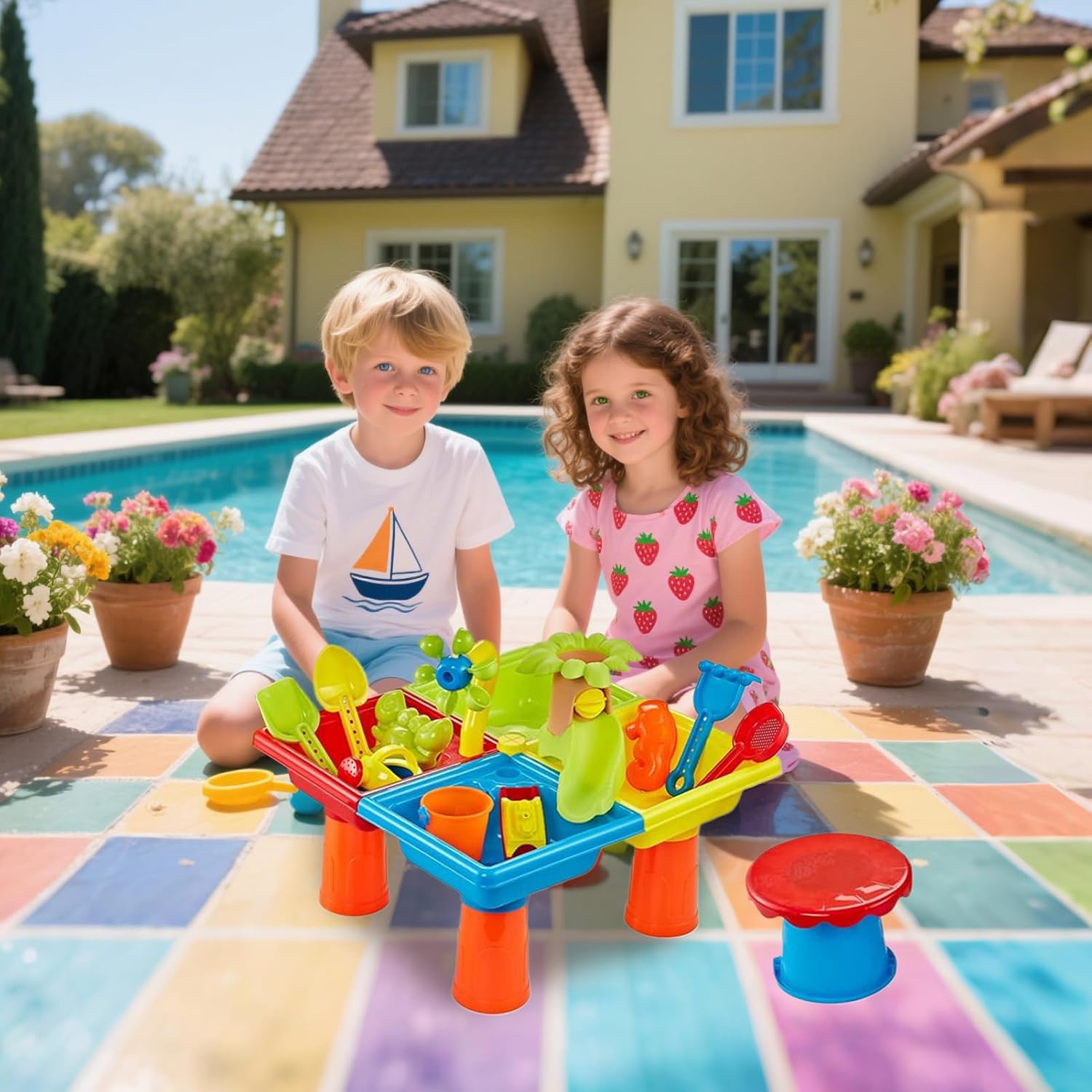 Separazione efficiente: design a 4 scomparti con vassoi impermeabili indipendenti mantiene separati, acqua e terra evitando miscele incrociate, migliorando le capacità organizzative e di classificazione durante il gioco dei bambini Protezione per bambini: bordi e struttura per bambini assicurano esperienze di gioco confortevoli e sicure all'aperto o al chiuso, ottimo per aree limitate dando priorità al benessere durante le attività con e acqua. Esplorazione pratica: Ruote girevoli e scivoli incoraggiano l'apprendimento interattivo attraverso attività tattili, stimolando l'osservazione e migliorando la coordinazione mano-nei giochi con e acqua. Leggero e resistente: realizzato in robusto materiale PP antiurto, questo tavolo d'acqua offre una durata eccezionale con un telaio leggero che semplifica il trasporto e lo stoccaggio, ideale per spazi ristretti. Divertimento multifunzionale: promuove il gioco creativo con un kit completo di 24 pezzi per e acqua, dotato di accessori come stampi, ruote idrauliche e barchette che migliorano l'apprendimento pratico e il divertimento.
