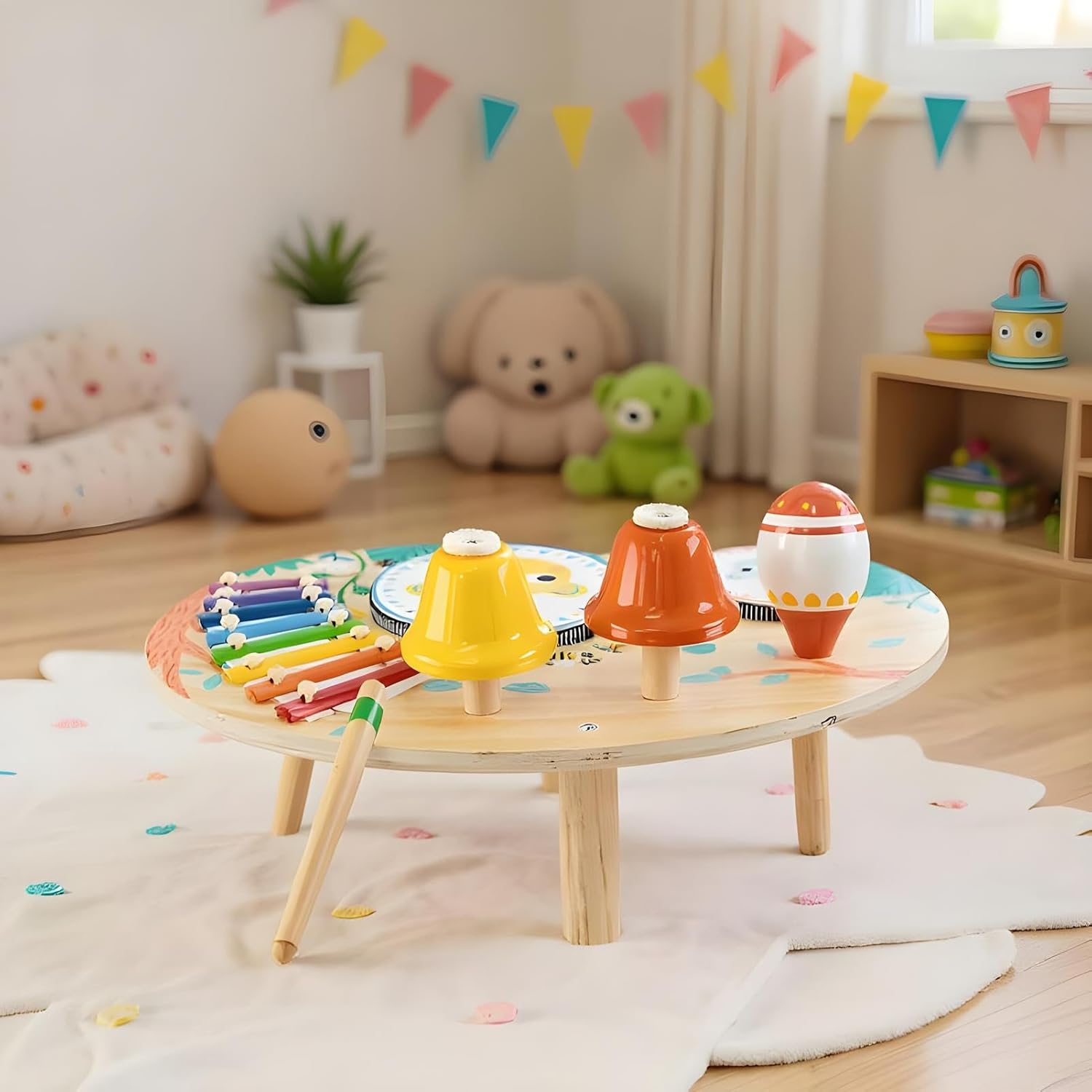Fondamento per Abilità Essenziali: Supporta l'identificazione dei colori base e delle scale musicali, potenzia l'alfabetizzazione artistica e le capacità cognitive e promuove lo sviluppo educativo precoce tramite il gioco interattivo Attività Interattive Educative: Combina divertimento e apprendimento con tamburo e che sviluppano consapevolezza ritmica e coordinazione, garantendo stimolazione uditiva e tattile attiva in ambiente di gioco creativo per fasi evolutive Sviluppo Interattivo: Stimola l'apprendimento attraverso il gioco migliorando le risposte uditive visive e tattili, supporta l'integrazione sensoriale e affina il pensiero logico grazie a funzioni coinvolgenti a misura di bambino sul tavolo attività Regalo Divertente: Concepito per esre affetto, è un regalo meraviglioso per compleanni, feste, Natale o capodanno, portando felicità a bambini e bambine incoraggiando il gioco immaginativo e momenti spensierati con esperienze creative interattive piene di gioia Sviluppo Abilità: Compagno di crescita su misura che incoraggia l'esplorazione autonoma, potenzia la motricità fine e si adatta alle naturali prese dei bambini, garantendo sicurezza con bordi arrotondati e costruzione robusta per un gioco