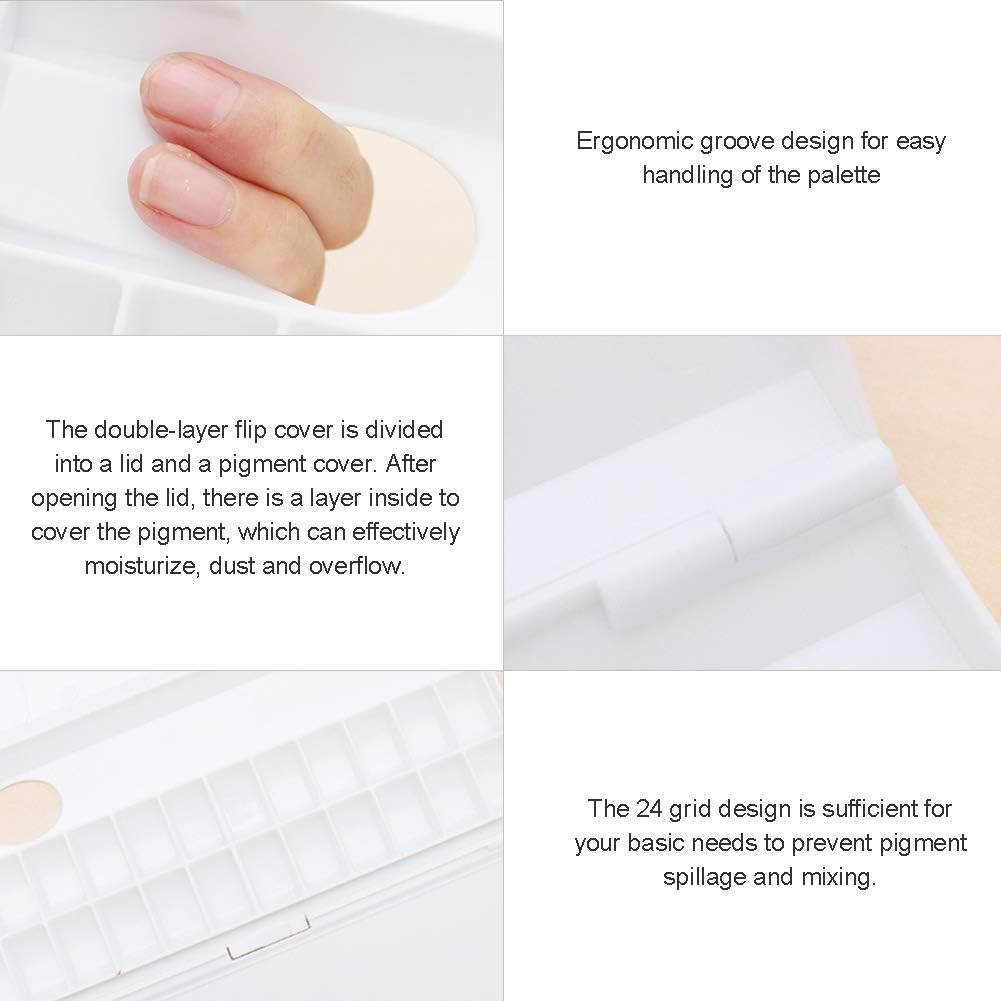 【Design ergonomico】 La tavolozza dell'acquerello presenta un design di scanalature ergonomiche che garantisce una facile maneggevolezza e una presa confortevole. Questo design innovativo riduce l'affaticamento della mano, consentendo agli artisti di concentrarsi sulla loro creatività senza disagio. Che tu sia studente o un artista professionista, apprezzerai come questa palette migliora la tua esperienza di pittura fornendo sia funzionalità che facilità d'uso. 【Capacità del colore】 Questo può contenere fino a 24 colori, accomodando una vasta gamma di tonalità per diverse esigenze artistiche. Il suo design unico consente una facile miscelazione e applicazioni per qualsiasi progetto. Con ampio spazio, puoi lavorare perfettamente con più colori senza preoccuparti delle fuoriuscite, garantendo un flusso di lavoro regolare per artisti di tutti i livelli di abilità. 【Coperchio di lancio a doppio strato】 dotato di una copertura a doppio strato a doppio strato, la tavolozza di vernice separa efficacemente il pigmento e impedisce la perdita. Il coperchio esterno protegge dalla polvere, mentre la copertura del pigmento interno mantiene l'umidità ideale per le vernici. Questo design premuroso ti consente di mantenere freschi i tuoi pigmenti e impedisce le fuoriuscite e il trabocco, rendendolo strumento essenziale per la pittura di problemi. 【Organizzazione efficiente】 La struttura a 24 griglie del vassoio è specificamente progettata per prevenire la fuoriuscita di pigmenti e la miscelazione, garantendo che ogni colore rimanga nella sua area designata. Questo layout organizzato ti consente di concentrarti sulla tua opera d'arte piuttosto che pulire e riorganizzare costantemente la tavolozza. Migliora la tua creatività con questo design ben ponderato che dà la priorità alla funzionalità. 【Leggero e portatile】 Progettato per comodità, è leggero e portatile, rendendo facile da trasportare in qualsiasi posizione. Che tu sia in studio, in una classe o all'aperto, questa palette può accompagnarti senza sforzo. Il suo design pieghevole e portatile garantisce che le tue vernici rimangano al sicuro e da macchie durante il trasporto, ideali per studenti e artisti in viaggio.