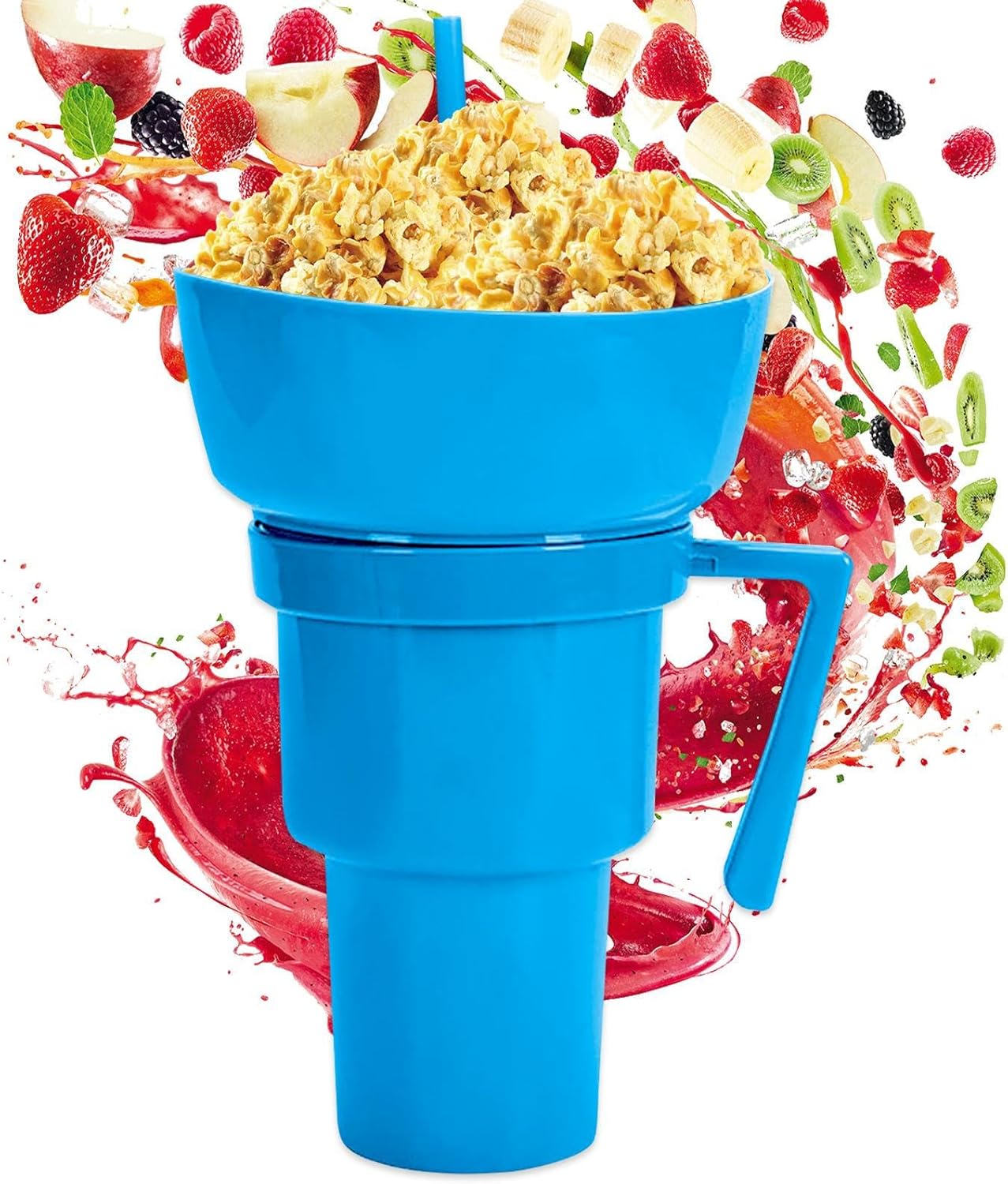 A prova di perdite: perfetto per i viaggi, il coperchio a prova di perdite e la guarnizione in silicone prevengono efficacemente le perdite e garantiscono un trasporto sicuro di snack e bevande. Grande volume: questa tazza per snack e bevande di grande capacità ottimizza viaggi, campeggio, sessioni di cinema e concerti. Elimina le interruzioni con il pratico design che massimizza il tuo comfort senza dover caricare. Separazione intelligente: l'ingegnoso sistema due in uno combina ciotola e tazza per un divertimento ininterrotto senza mescolare i sapori. USO UNIVERSALE - Soluzione integrata per servire una varietà di snack come popcorn o frutta fresca. Adatto a contesti sociali grazie alla manipolazione intuitiva e alla conservazione sicura degli alimenti. USO UNIVERSALE - Ideale per evitare problemi di condivisione durante la conversazione. Presentazione innovativa come regalo pratico per i propri cari.