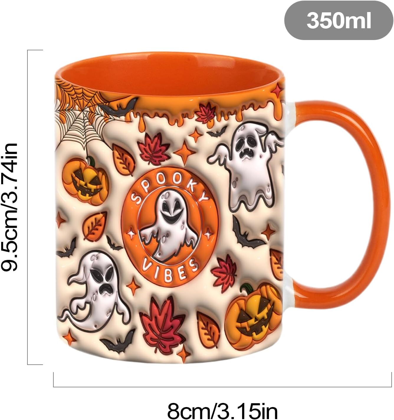 Design stagionale: stampe dinamiche con zucche, fantasmi e mummie risvegliano lo spirito di Halloween - perfetto come accessorio decorativo o per il consumo quotidiano di bevande calde nella stagione spettrale. Dimensione perfetta per le bevande: tazza dalla forma comoda con manico comodo e volume ottimale per caffè, tè e altre bevande calde, offre maneggevolezza ergonomica e capacità pratica per l'uso quotidiano, perfezionata da una speciale esperienza di piacere quando si beve. Regalo a sorpresa festivo: questa tazza è per le celebrazioni di Halloween e offre un'opzione regalo creativa. Mostra la tua preoccupazione e diffonde gioia in qualsiasi festa di Halloween o momento personale. Accessori per la casa stagionali: aggiungi un fascino speciale con lavorazione artistica e motivi vivaci. Questa tazza di Halloween è perfetta per decorazioni festive sulla tavola o per scopi espositivi durante le vacanze. Facile integrazione nelle decorazioni autunnali esistenti. Costruzione stabile: la ceramica a fuoco alto previene lo scolorimento e la deformazione. Garantisce un'utilizzabilità a lungo termine con superfici resistenti al calore e facili da pulire.