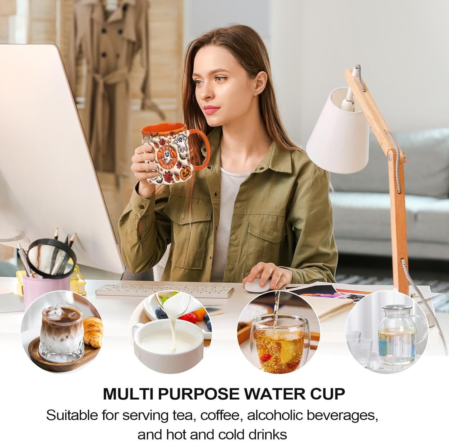 Look espressivo: vivaci motivi di Halloween con zucche, fantasmi e mummie aggiungono fascino alla tua atmosfera vacanziera - highlight decorativo e pratica tazza per tutti i giorni per la stagione spettrale Dimensione perfetta per le bevande: tazza dalla forma pratica con manico comodo e volume ottimale per caffè, tè e altre bevande calde, offre maneggevolezza ergonomica e capacità pratica per l'uso quotidiano, il tutto arricchito da una speciale esperienza di piacere quando si beve. Idea regalo creativa: questa tazza di Halloween è un regalo divertente e premuroso che si adatta perfettamente alle tradizioni culturali della stagione spettrale. Fornisce una sorpresa indimenticabile e delizia ogni destinatario durante la stagione di Halloween. Accessori per la casa stagionali: aggiungi un fascino speciale con lavorazione artistica e motivi vivaci. Questa tazza di Halloween è perfetta per decorazioni festive sulla tavola o per scopi espositivi durante le vacanze. Facile integrazione nelle decorazioni autunnali esistenti. Costruzione stabile: la ceramica a fuoco alto previene lo scolorimento e la deformazione. Garantisce un'utilizzabilità a lungo termine con superfici resistenti al calore e facili da pulire.