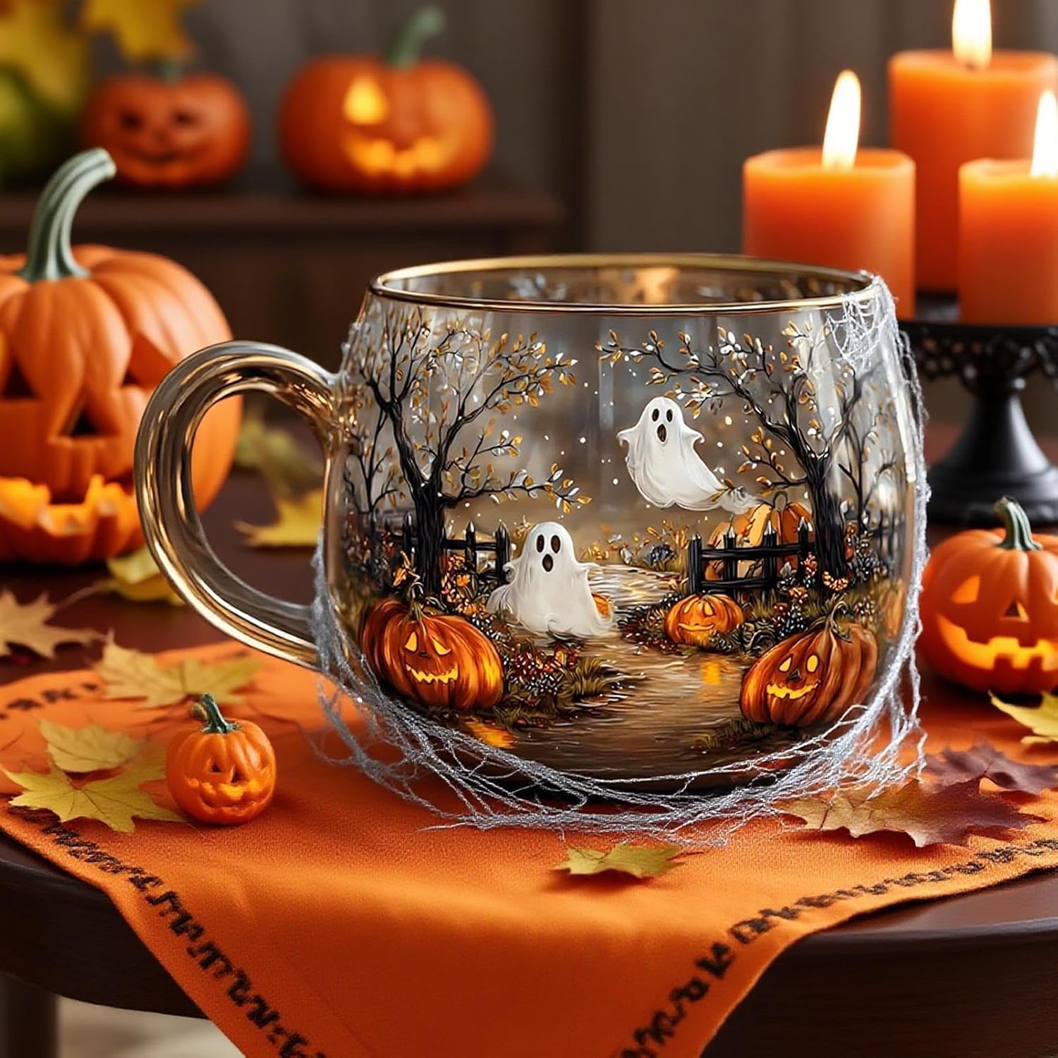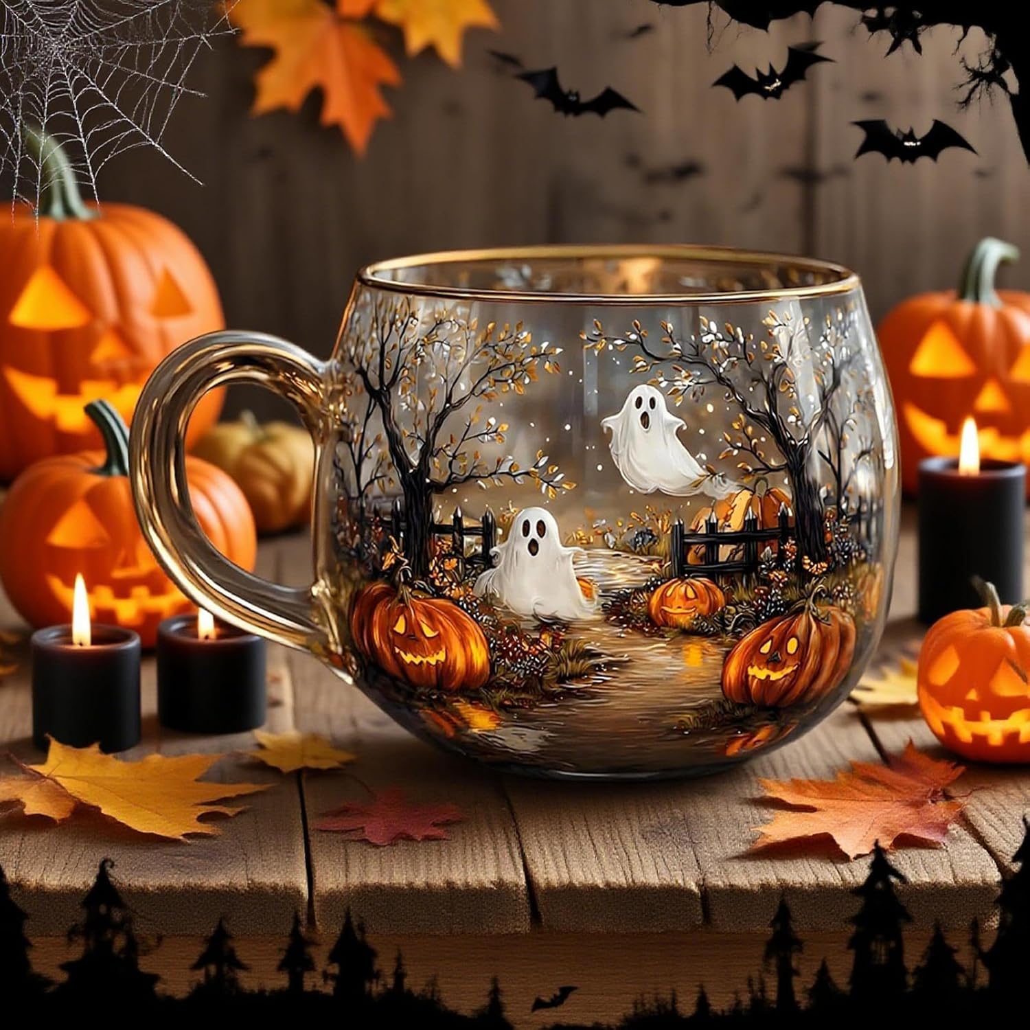 Perfetto per l'uso quotidiano: ideale per l'uso quotidiano. Questa tazza con dimensioni pratiche e grande capacità garantisce ore rilassanti al mattino. Adatto al microonde per un facile riscaldamento, per bere caffè o tè in modo affidabile quando necessario. Idea regalo: ideale come regalo per gli innamorati, questa tazza trasmette l'attenzione personale e diffonde gioia. Il design creativo di Halloween esalta l'atmosfera festiva grazie al suo tema allegro. Atmosfera di Halloween per sorso: prova il puro piacere di bere da questa tazza. Affascinanti raffigurazioni di zucca e zucca invitano a godere del tipico fascino spaventoso della stagione e garantiscono una festa in ogni occasione Ampia apertura: la forma generosa consente di gustare bevande calde e zuppe senza sforzo, dal design versatile per ogni occasione grazie all'ampio contenuto Tazza autunnale: impressionante tazza di Halloween con fine dipinto a mano e materiale in vetro. Diventerà parte integrante della tua collezione di decorazioni festive