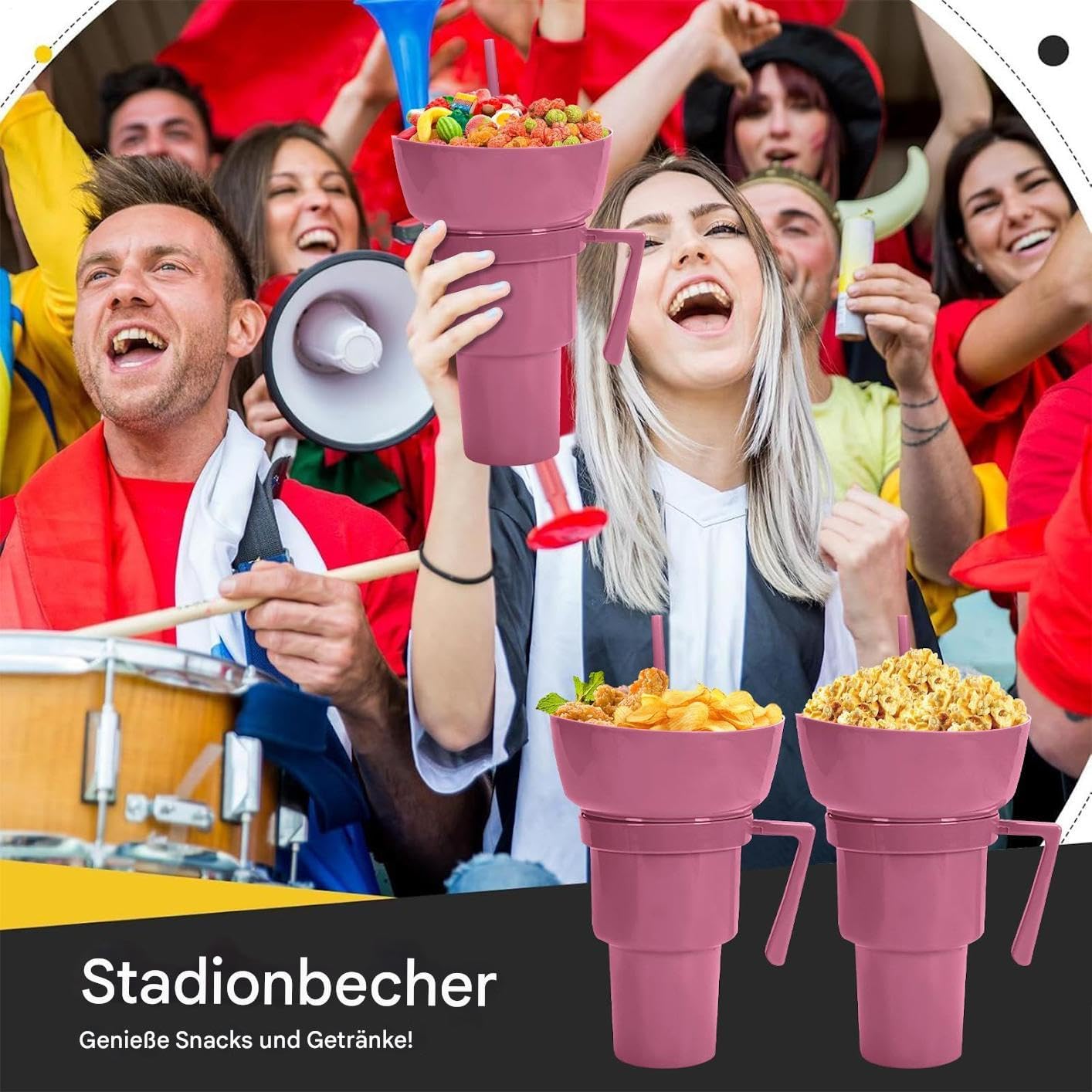 Soluzione che fa risparmiare tempo: il doppio spazio di archiviazione per festival sportivi, gite di un giorno o visite allo stadio consente un utilizzo più lungo senza contenitori aggiuntivi Design elegante: tazza versatile per snack e bevande per popcorn, noci, frutta e altro ancora. Migliora il tuo hosting a feste ed eventi con comfort e un aspetto moderno. Funzione di combinazione ottimizzata: gli scomparti separati mantengono gli snack e le bevande separati in modo sicuro, permettendoti di goderti entrambi i componenti senza sforzo allo stesso tempo. Soluzione regalo ideale: snack speciale per serate di cinema indisturbate, crea un'atmosfera armoniosa e offre idee regalo creative per occasioni speciali con vantaggi pratici. Design di facile manutenzione: la superficie liscia e la guarnizione in silicone rimovibile consentono una facile pulizia. Compatto e leggero per gite spontanee con la merenda dei bambini.