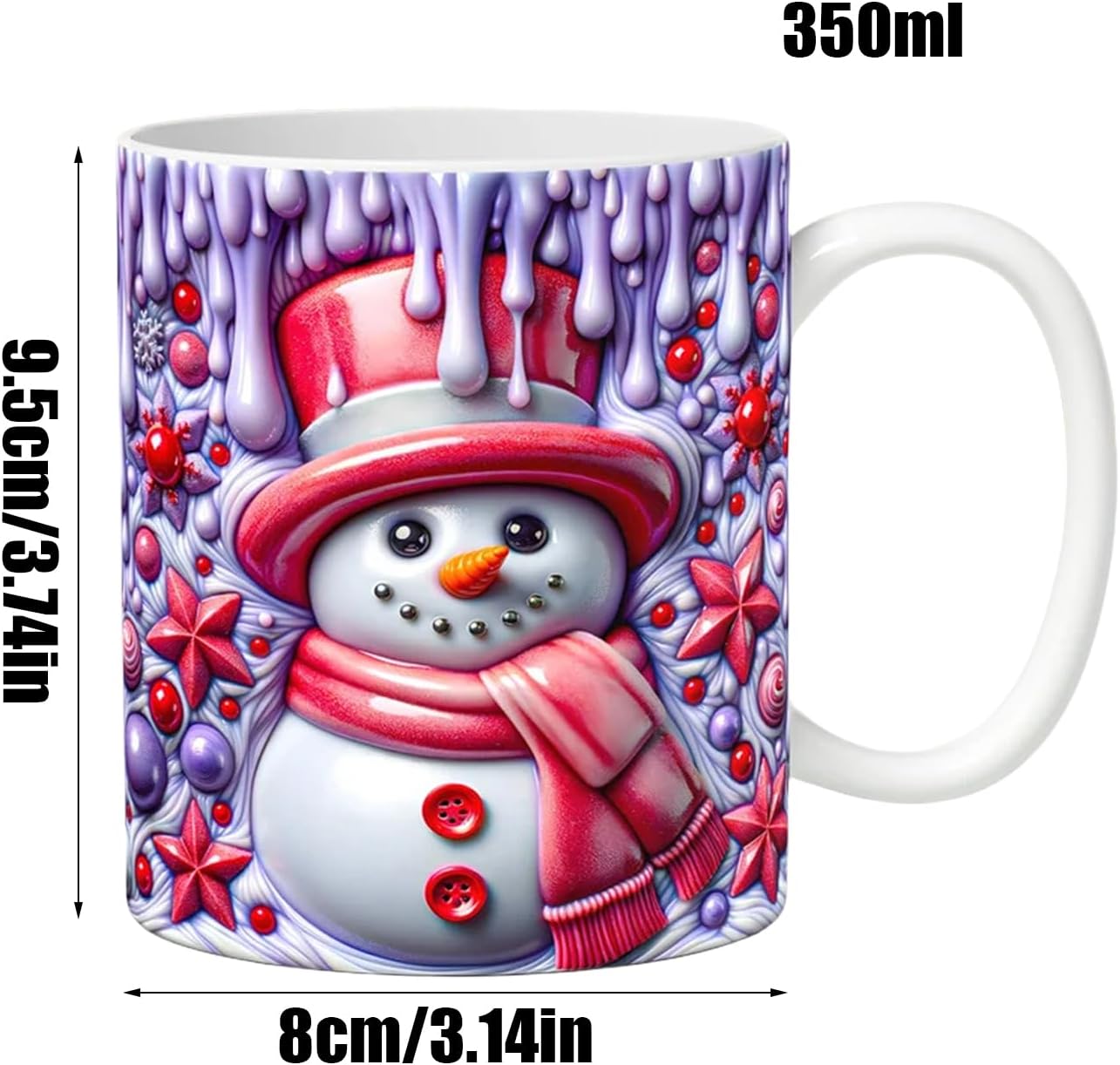 Atmosfera natalizia: l'allegro design natalizio 3D si armonizza con qualsiasi decorazione natalizia e diffonde facilmente l'allegria natalizia nella tua casa Maneggevolezza sicura: con un volume di 350 ml, questa tazza è progettata per adattarsi alla maggior parte dei portabicchieri e offre prestazioni affidabili sia quando ci si rilassa a casa che al lavoro in ufficio Dona calore: un modo meraviglioso per esprimere affetto Queste tazze sono auspicate per regali di inaugurazione della casa e aggiunte commoventi a ogni tradizione natalizia che creano ricordi duraturi grazie al loro fascino accogliente e applicabilità universale Robusta ceramica: realizzata in alta qualità in ceramica bianca, questa tazza è progettata per durare e offre una presa comoda e prestazioni eccellenti per tutte le bevande natalizie. Di facile manutenzione e durevoli: queste tazze natalizie sono progettate per una pulizia semplice e garantiscono una manipolazione senza problemi grazie alla loro idoneità alla lavastoviglie, eliminando la necessità di lavarsi le mani, che richiede tempo, e mantenendole come nuove anche dopo un uso frequente
