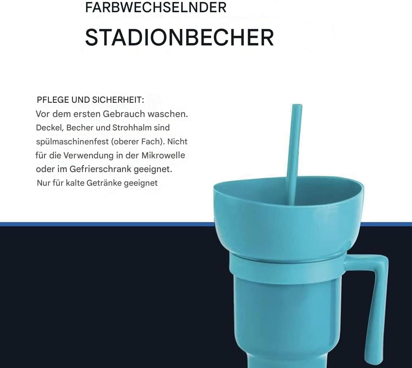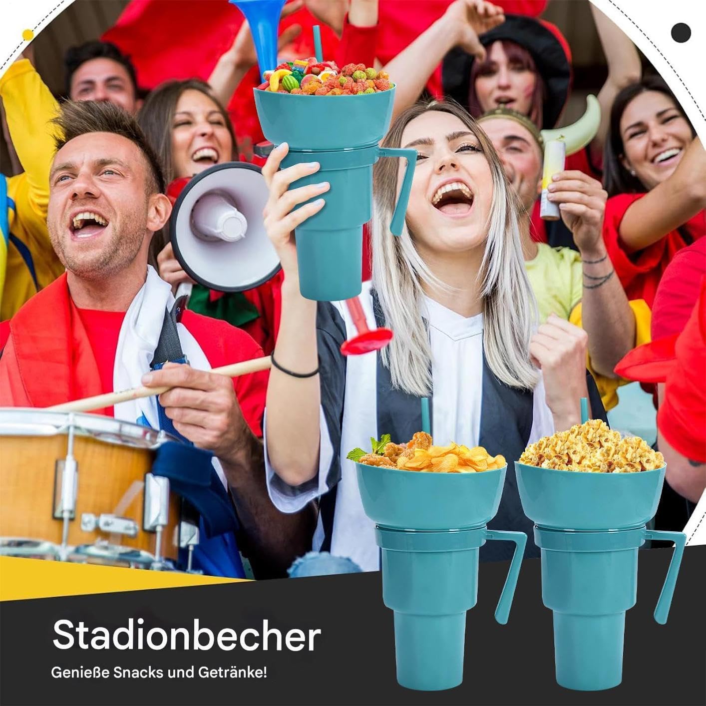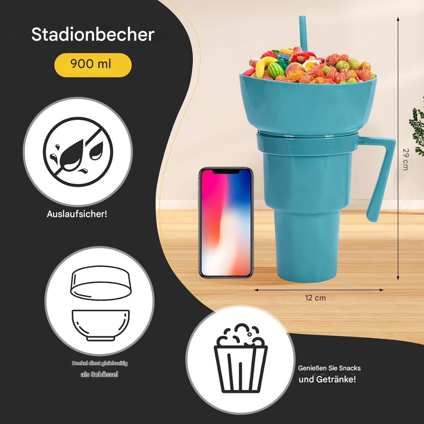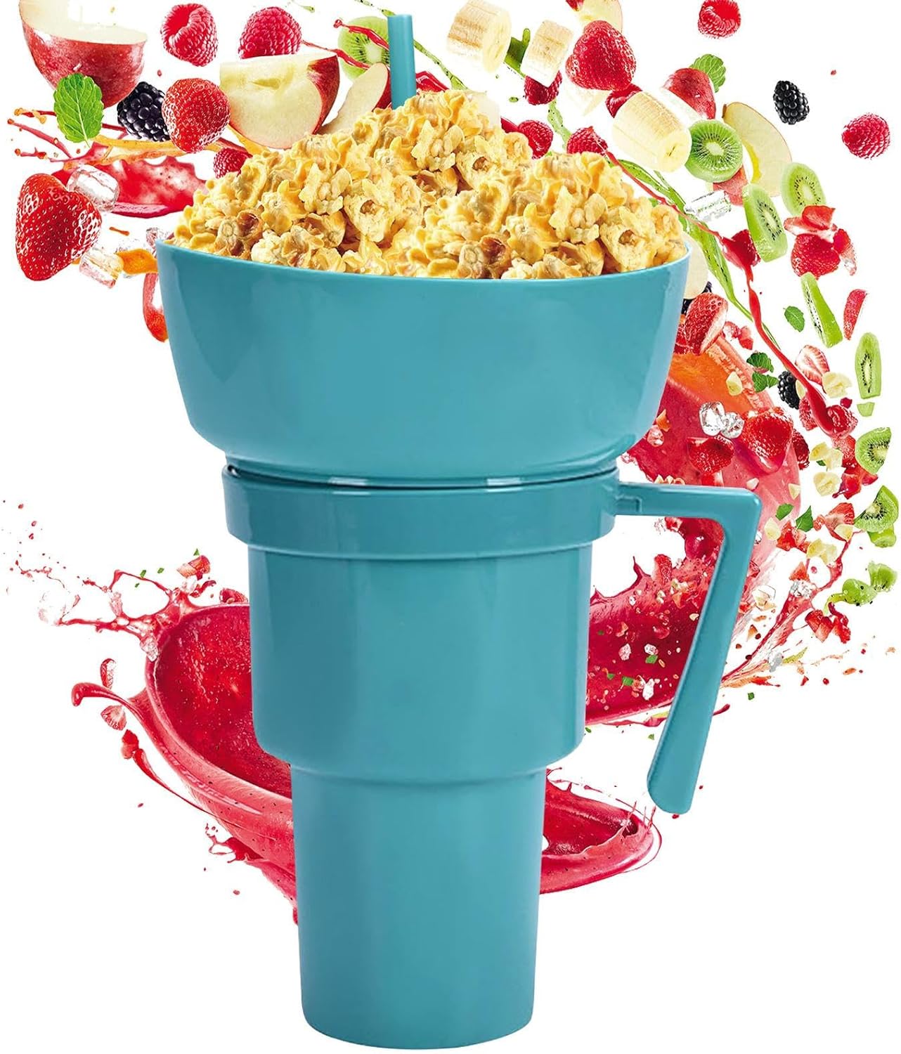 Grande capacità: ideale per viaggi, campeggio, cinema o concerti: la spaziosa tazza per snack e bevande riduce le ricariche e offre un pratico utilizzo quotidiano grazie alla disposizione intelligente dello spazio. Versatile: contiene popcorn, noci, frutta e altri snack in modo sicuro. Indispensabile per feste, incontri sociali ed eventi in cui la funzionalità incontra un design accattivante. Pratica soluzione per snack: combina il contenitore per snack con il portabicchiere, ti permette di bere senza mescolare sapori o versare liquidi. Versatile: perfetto per le serate di cinema come combinazione personale di snack e bevande per aumentare il divertimento, evita discussioni durante la condivisione ed è un regalo premuroso per gli appassionati di cinema. Soluzione sicura in movimento: grazie alla guarnizione in silicone resistente all'usura e alla chiusura a prova di perdite, non ci sono macchie nella borsa. Perfetto per bevande e snack.