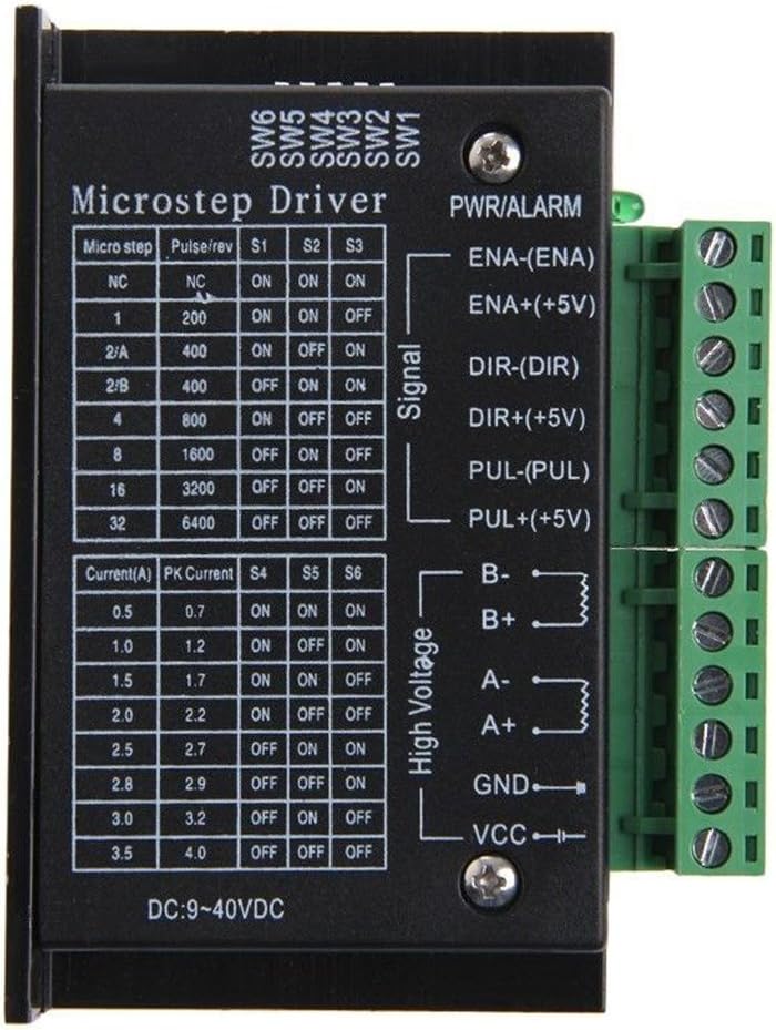 Materiale : Componenti elettrici Questa unità è una versione aggiornata di TB6600, la suddivisione di aumento a 32 segmenti , per scopi di targeting elevati. 42/57/86 TB6600 Motore passo a passo 32 segmenti versione aggiornata 4.0A 40VDC per fresatrice CNC Motore passo-passo applicabile: fase 42.57, 86 fasi (4 fili, 6 fili 8 fili) 100% nuovo e