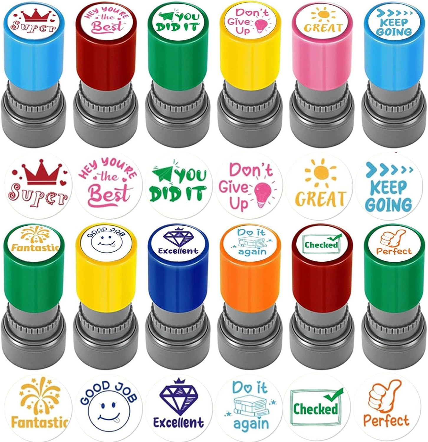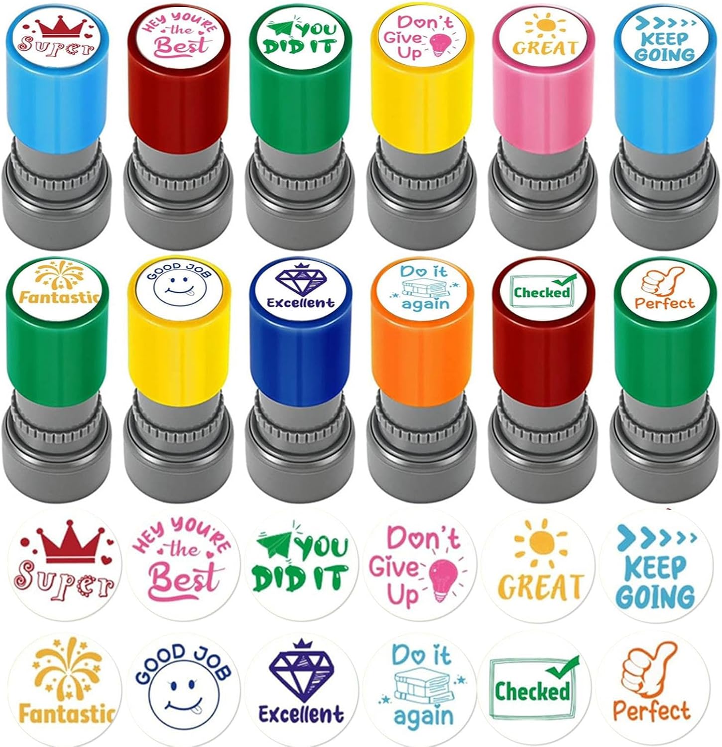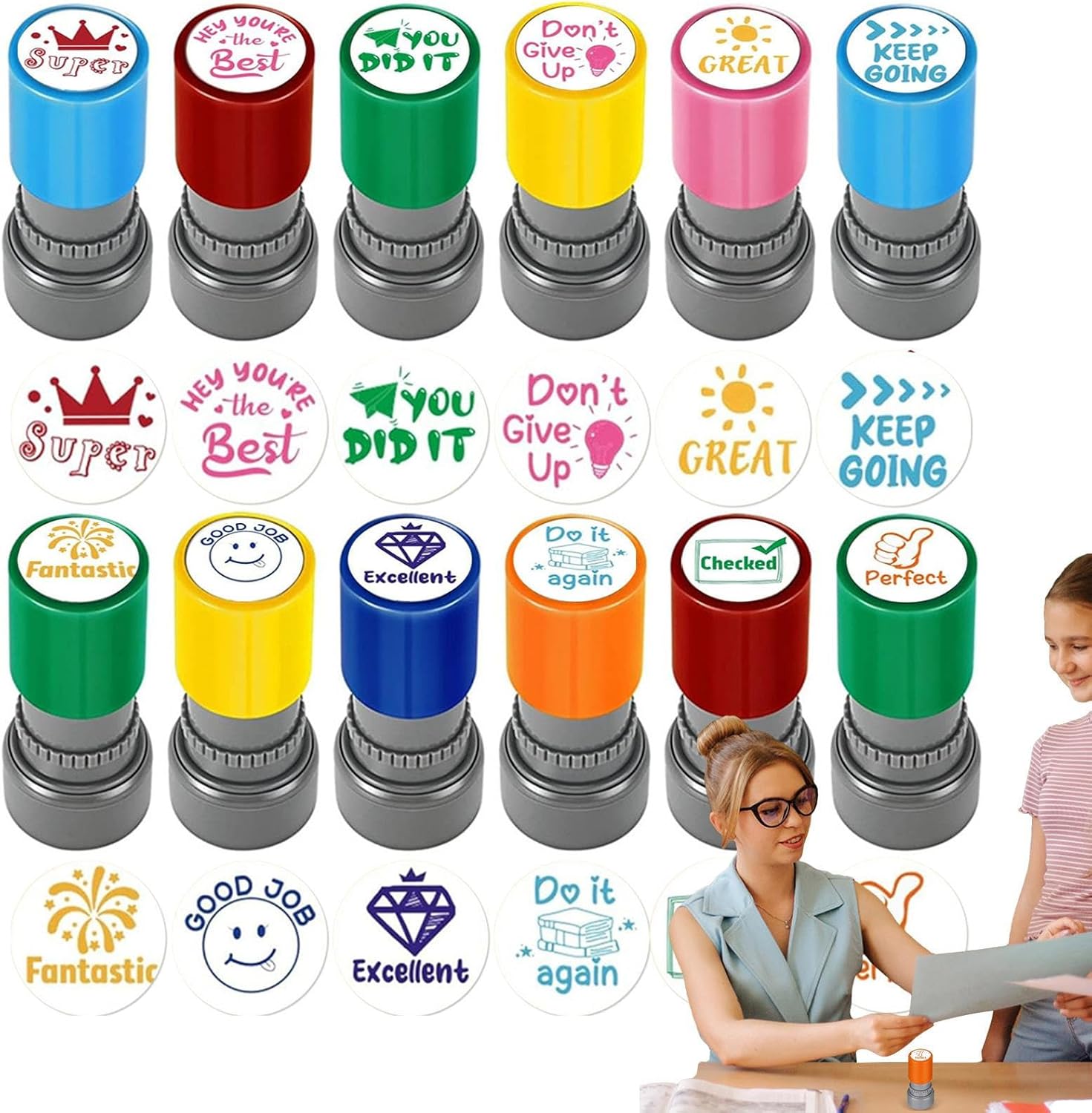 Set includes 12 colorful cartoon teacher stamps designed for grading, feedback, and student motivation—perfect for classroom assessments, behavior tracking, and encouraging learning through visual and positive reinforcement. Features a variety of creative messages and fun designs such as “Great Job,” “Keep It Up,” and “Needs Improvement,” helping teachers easily communicate performance and attitude to students in an engaging and supportive way. Pre-inked stamps provide thousands of clear impressions without the need for a separate ink pad, saving time during grading and allowing teachers to give fast, consistent feedback with vibrant, easy-to-read marks. Compact and portable stamp set fits neatly into any desk drawer, backpack, or pencil case, making it ideal for teachers on the go or for classroom, homeschooling, and tutoring use across different locations and lessons. Boost student engagement and improve communication with visual feedback—these fun stamps help build positive relationships between teachers and students while encouraging kids to improve and stay motivated.
