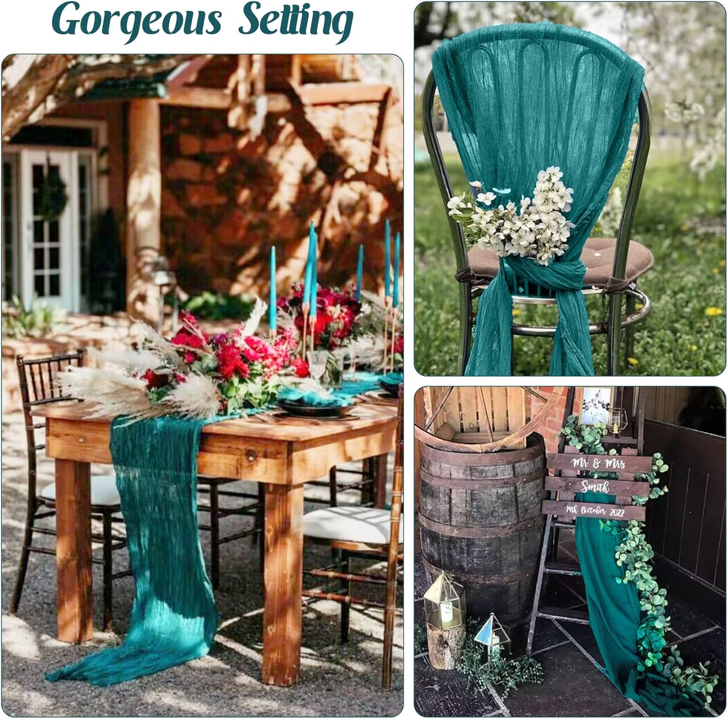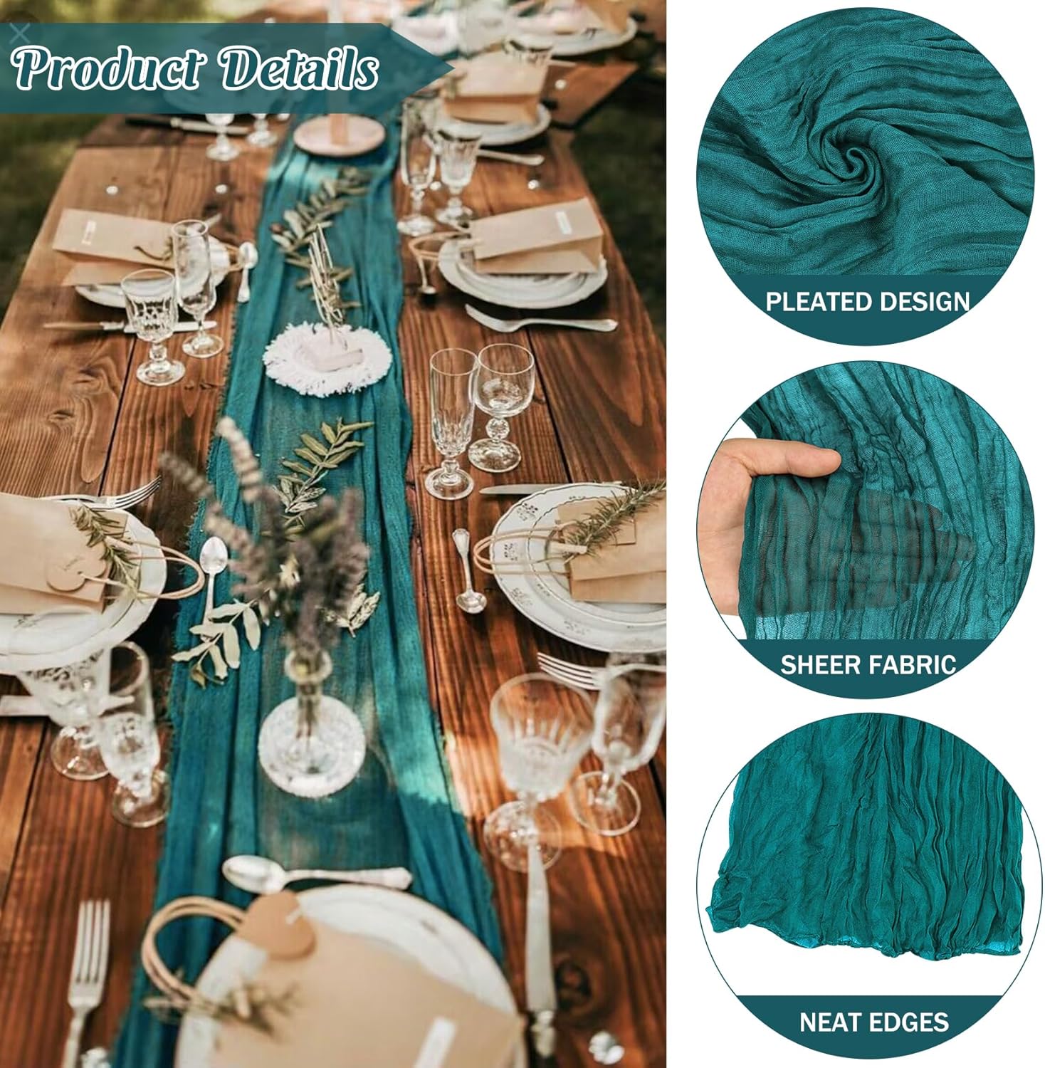 【Applicazioni ampie】 Questi corridori del tavolo di garza vintage sono adatti per la maggior parte delle occasioni. Possono anche essere usati come archi, tavoli e decorazioni delle sedie, feste di compleanno, baby shower e più decorazioni per feste. Puoi anche acquistarli come confezioni regalo per Natale, Capodanno, San Valentino, compleanno, Giorno del Ringraziamento. 【Taglia perfetta】 La dimensione di ogni runner da tavolo di garza è di circa 35 x 120 pollici, che può vestire perfettamente la maggior parte dei tavoli, come tavoli rettangolo, tavoli rotondi o tavoli da cocktail. Possono anche essere utilizzati per drappeggi nuziali, drappeggi da fondo, drappeggi a soffitto, fasce di copertura della sedia e avvolgimento regalo. La garanzia del produttore non si applicherà. Si prega di rivedere la politica di restituzione di Amazon U2019, che di solito offre rendimenti gratuiti entro 30 giorni dal ricevimento. a class="a-link-normal" href="https://www.amazon.co.uk/b?node=10859429031"Ulteriori informazioni/a su Amazon Global Store. 【Suggerimenti per il lavaggio】 I corridori del tavolo da matrimonio vintage sono raccomandati per lavabili in lavatrice in una borsa per biancheria o lavaggio a mano in acqua fredda con detergente delicato. Per mantenere la sua trama piena di piene, per favore non stirarla. Si prega di evitare di asciugare alla luce del sole diretto o il suo colore potrebbe sbiadire. Può servirti a lungo sotto la tua cura.