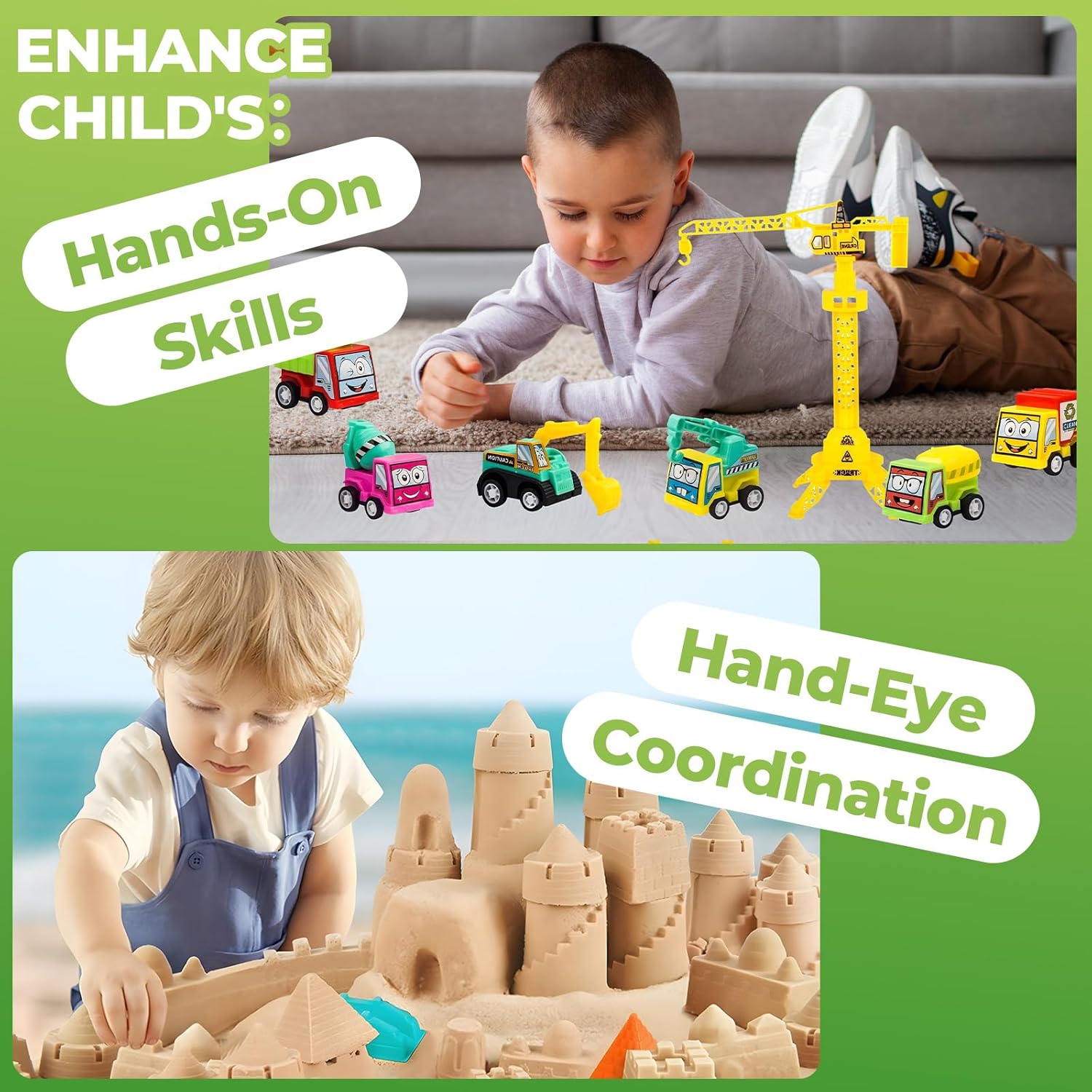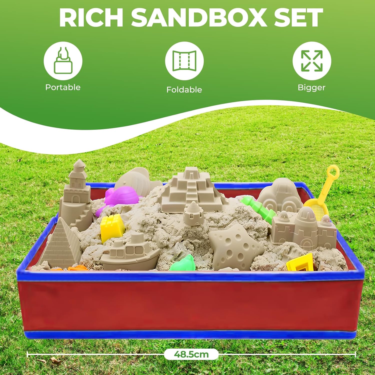 Set Completo per Giochi Creativi: Include 1kg di sabbia magica per bambini (2 sacchetti da 500g), 9 veicoli da cantiere colorati, 20 segnali stradali e 5 strumenti. Perfetto per stimolare la fantasia e la motricità fine dei bimbi dai 3 anni in su Sabbiera Pieghevole Pratica E Compatta: La nostra sabbia per sabbiera bambini viene con un contenitore rosso quadrato che si ripiega in un attimo, ideale per giocare in casa sul pavimento del salotto o all'aperto in giardino Gioco Educativo E Terapeutico: La speciale sabbia cinetica bambini 3 anni non macchia, non si attacca alle mani ed è facilmente modellabile. Aiuta a sviluppare i sensi e rilassa i piccoli dopo una giornata di scuola Simulazione Di Cantiere Realistico: Con 8 diversi veicoli da costruzione (inclusa una gru), segnali stradali e attrezzi, i bambini possono ricreare perfetti cantieri edili come quelli visti in città Regalo Perfetto per Piccoli Costruttori: Questo set con sabbia per bambini è l'ideale per compleanni, Natale o la festa della Repubblica. Include tutto il necessario per iniziare a giocare subito