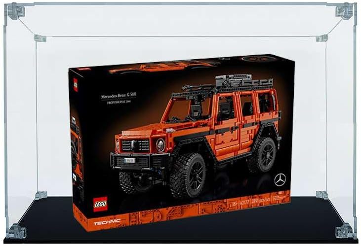 La teca in Plexiglass su misura compatibile con Mercedes-Benz G 500 PROFESSIONAL Line LEGO 42177 Modello Arca Lite spessore lastre 4mm con viti e angolari trasparenti Base in Plexiglass nero lucido spessore lastra 5mm Sfondo incluso e rimovibile 100% Made in Italy