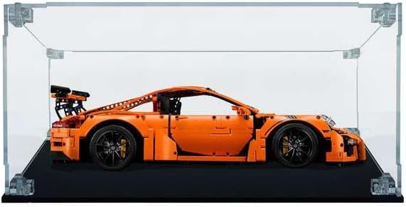 La teca in Plexiglass su misura compatibile con Porsche 911 GT3 RS LEGO 42056 Modello Arca Lite spessore lastre 4mm con viti e angolari trasparenti Base in Plexiglass nero lucido spessore lastra 5mm Sfondo incluso e rimovibile 100% Made in Italy