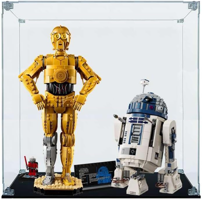 La teca in Plexiglass su misura compatibile con C-3PO e R2-D2 LEGO 75398 -75379 Modello Arca Lite spessore lastre 4mm Base in Plexiglass nero lucido spessore lastra 5mm Viti e angolari trasparenti 100% Made in Italy