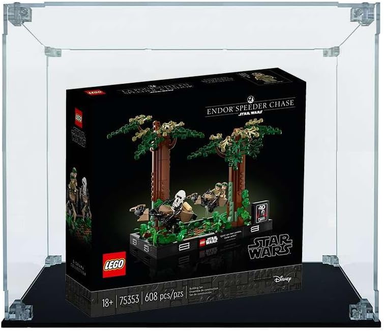 La teca in Plexiglass su misura compatibile con Diorama Inseguimento con lo speeder su Endor LEGO 75353 Modello Arca Lite spessore lastre 4mm Base in Plexiglass nero lucido spessore lastra 5mm Viti e angolari trasparenti 100% Made in Italy