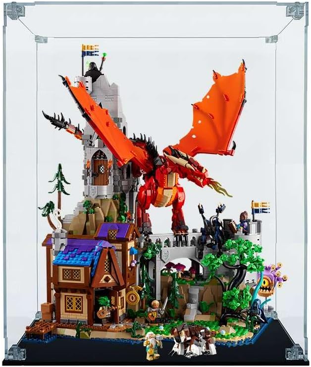 La teca in Plexiglass su misura compatibile con Dungeons & Dragons Il racconto del Drago Rosso LEGO 21348 Modello Arca Lite spessore lastre 4mm Base in Plexiglass nero lucido spessore lastra 5mm Viti e angolari trasparenti 100% Made in Italy