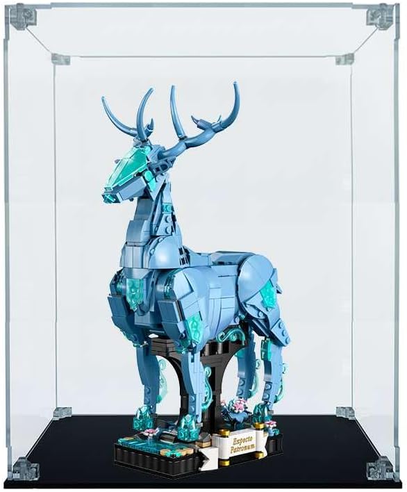 La teca in Plexiglass su misura compatibile con Expecto Patronum Cervo LEGO 76414 Modello Arca Lite spessore lastre 4mm Base in Plexiglass nero lucido spessore lastra 5mm Viti e angolari trasparenti 100% Made in Italy