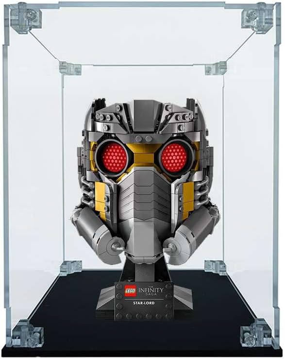 La teca in Plexiglass su misura compatibile con Il casco di Star Lord LEGO 76251 Modello Arca Lite spessore lastre 4mm Base in Plexiglass nero lucido spessore lastra 5mm Viti e angolari trasparenti 100% Made in Italy