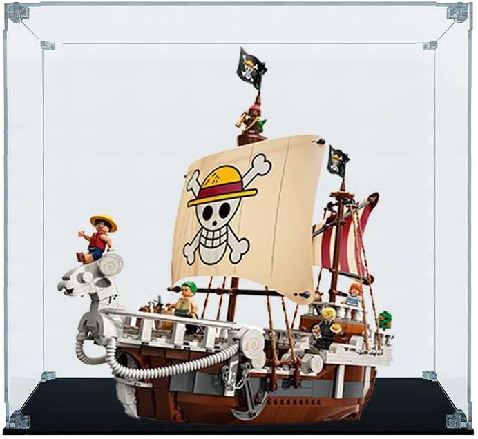 La teca in Plexiglass su misura compatibile con La nave pirata Going Merry LEGO 75639 Modello Arca Lite spessore lastre 4mm Base in Plexiglass nero lucido spessore lastra 5mm Viti e angolari trasparenti 100% Made in Italy