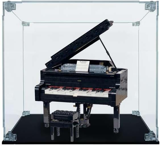 La teca in Plexiglass su misura compatibile con Pianoforte a coda LEGO 21323 Modello Arca Lite spessore lastre 4mm Base in Plexiglass nero lucido spessore lastra 5mm Viti e angolari trasparenti 100% Made in Italy