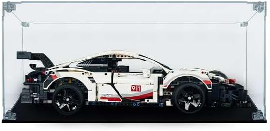 La teca in Plexiglass su misura compatibile con Porsche 911 RSR LEGO 42096 Modello Arca Lite spessore lastre 4mm Base in Plexiglass nero lucido spessore lastra 5mm Viti e angolari trasparenti 100% Made in Italy