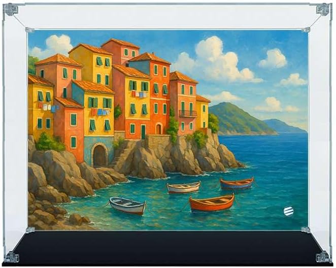 La teca in Plexiglass su misura compatibile con Riviera italiana LEGO 21359 Modello Arca Lite spessore lastre 4mm Base in Plexiglass nero lucido spessore lastra 5mm Viti e angolari trasparenti 100% Made in Italy