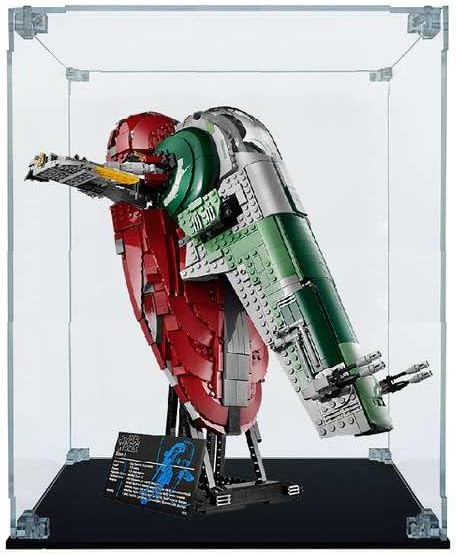 La teca in Plexiglass su misura compatibile con Slave 1 LEGO 75060 Modello Arca Lite spessore lastre 4mm Base in Plexiglass nero lucido spessore lastra 5mm Viti e angolari trasparenti 100% Made in Italy