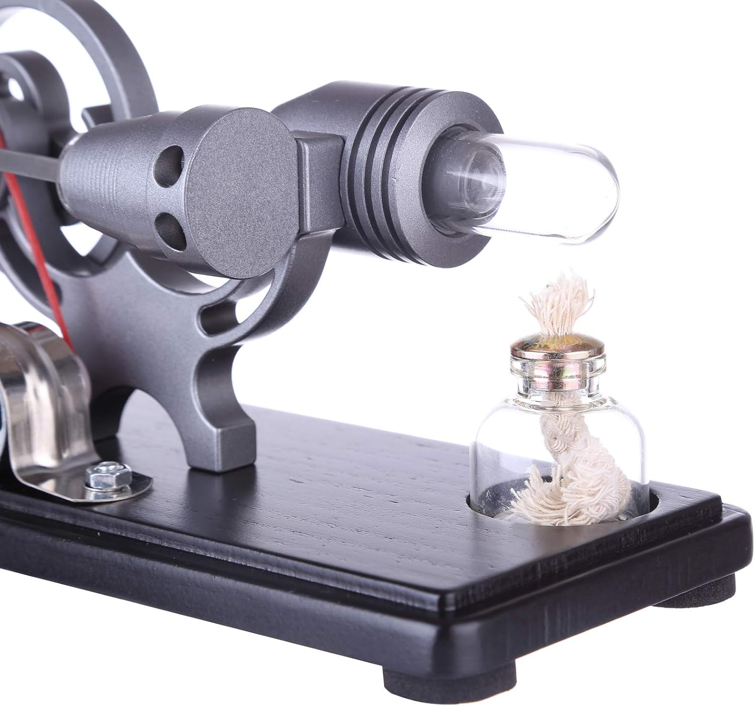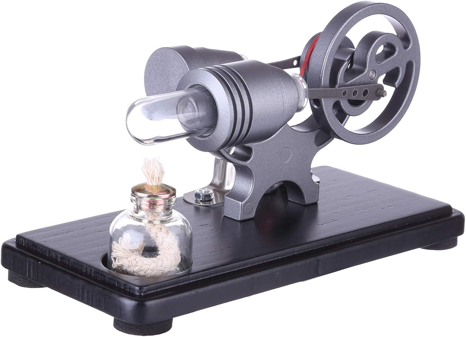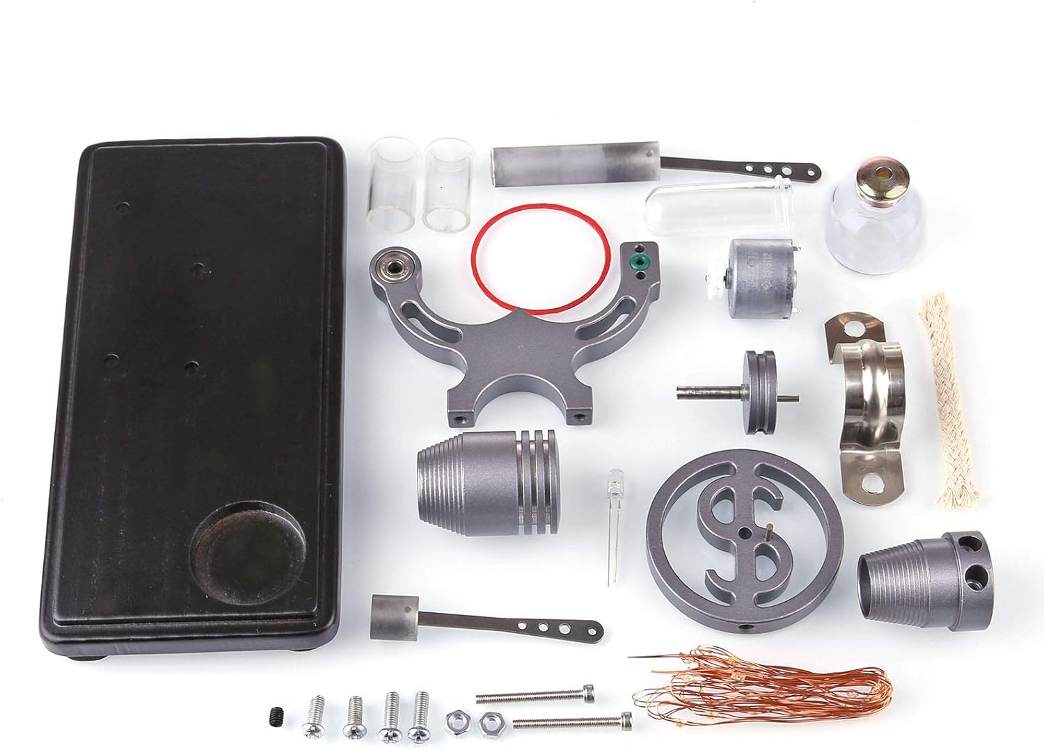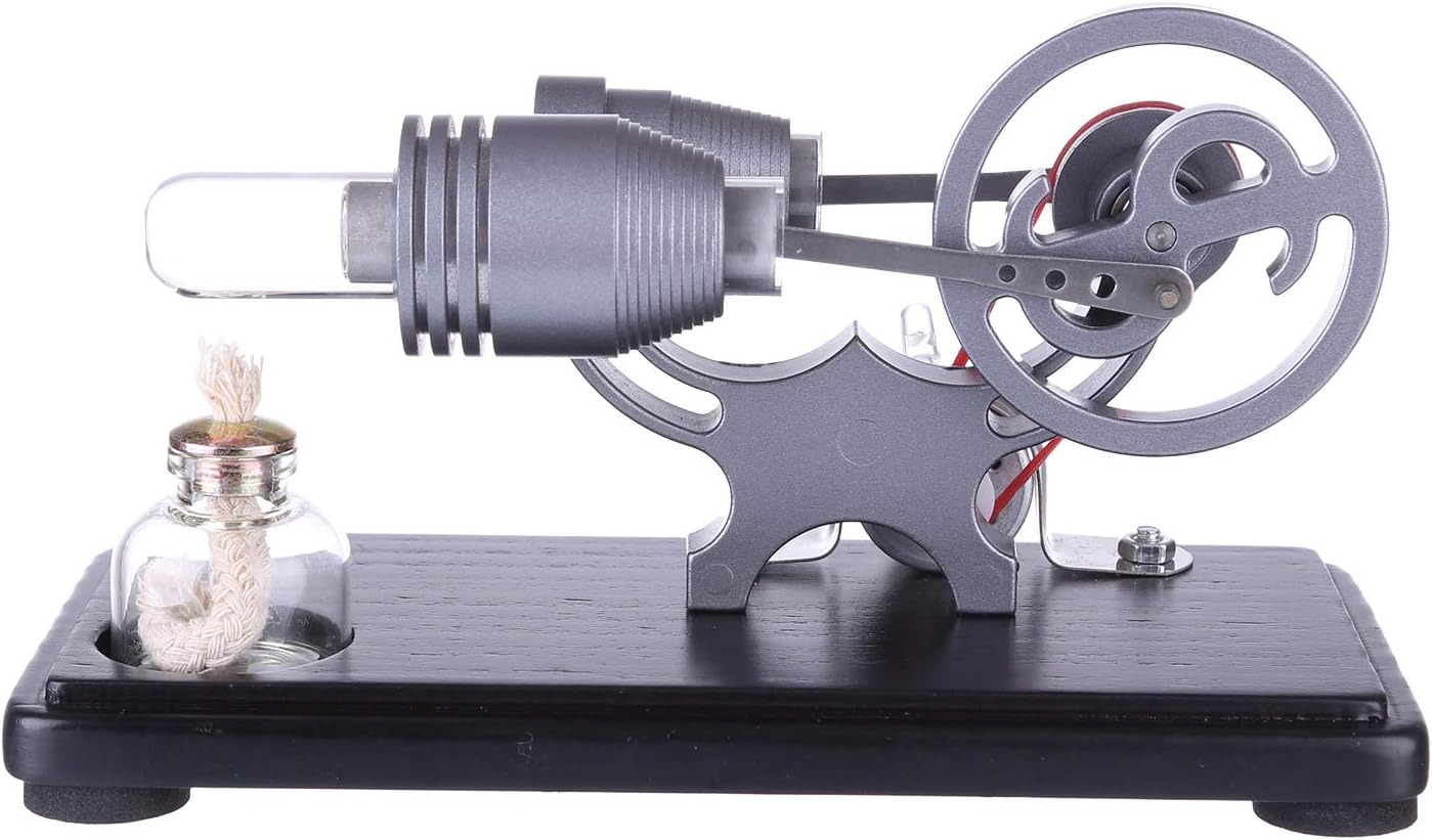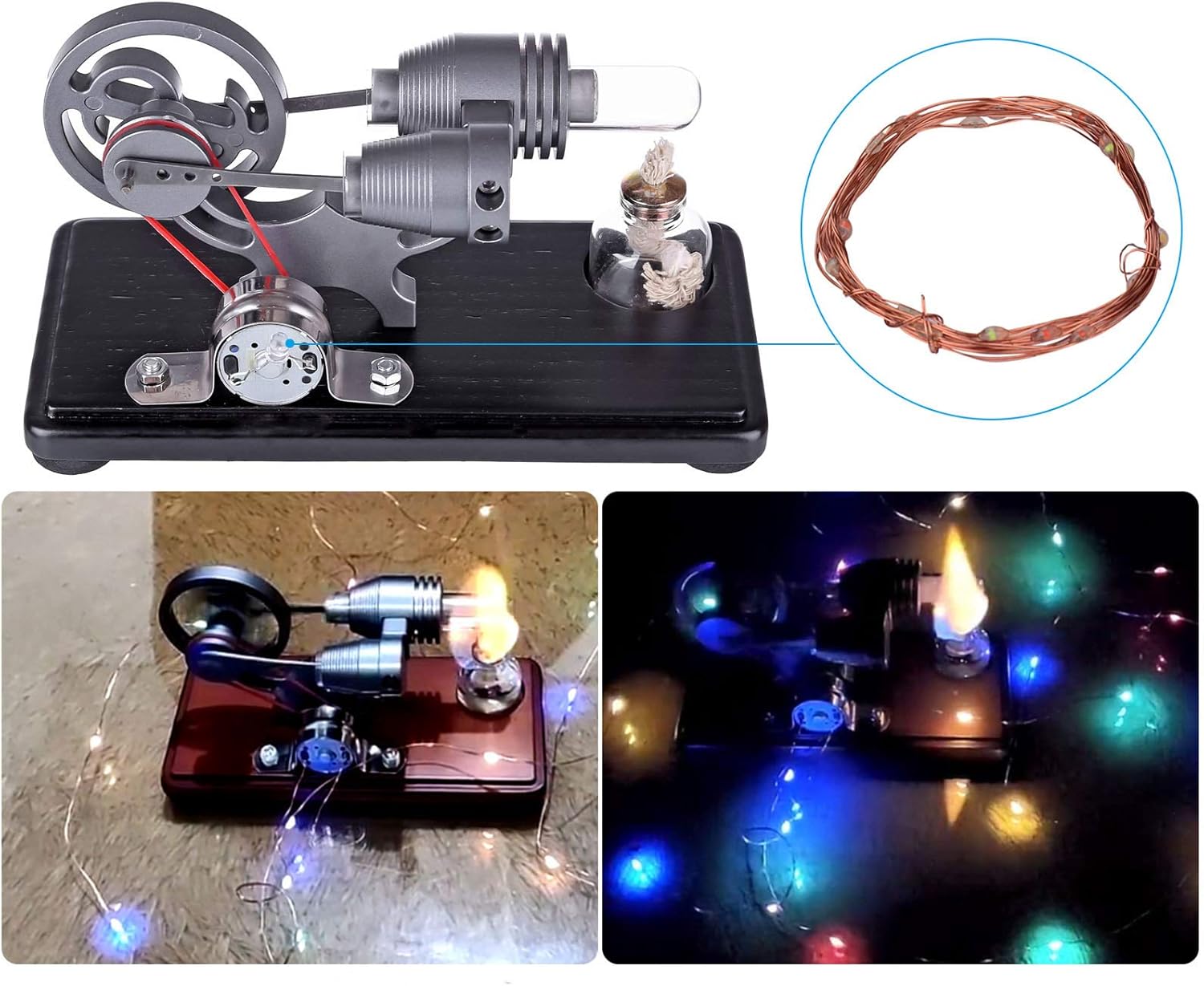 Squisito motore Stirling: il motore Stirling è semplice ed elegante, con un aspetto retrò e squisito, con un piccolo generatore, diodi emettitori di luce a LED e stringhe di luce, e può creare diverse forme di illuminazione fai da te, e la macchina può fornire luci brillanti quando è in esecuzione. Squisita fattura: piastra in legno, volano simbolo del pittogramma del dollaro, stile industriale retrò totale, corpo principale è realizzato in alluminio di alta qualità e materiali in lega, tecnologia di lavorazione CNC ad alta velocità, lucidatura fine complessiva, funzione macchina è stabile e affidabile, struttura ed estetica doppia combinazione. Istruzioni: il prodotto viene fornito con istruzioni di montaggio e strumenti di installazione, si prega di fare riferimento alle istruzioni per il montaggio fai da te. Posizionare il motore Stirling su un tavolo orizzontale, versare alcol al 95% nella lampada ad alcool, accendere la lampada dell'alcool e posizionarla sotto il cilindro caldo per preriscaldare per 30 secondi, ruotare il volano a mano e la macchina può funzionare. Giocattolo educativo scientifico: assemblando un modello di motore Stirling, puoi allenare le tue abilità manuali e mentali, e puoi anche lavorare e giocare, osservare il processo di conversione dell'energia magica, espandere le tue conoscenze e migliorare la tua immaginazione e creatività. Regalo creativo: questo prodotto può essere utilizzato non solo come una collezione di ornamenti desktop squisiti tecnologici, ma può anche essere regalato ad altri