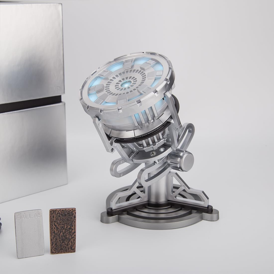 Riproduzione ad alta precisione: questa statuetta è modellata esattamente sul reattore ad arco di terza generazione e offre una replica fedele degli iconici elementi di fantascienza con un impressionante aspetto futuristico. Divertimento interattivo: inserire la piastra in palladio per attivare l'effetto di illuminazione. In questo modo l'accensione di un vero reattore ad arco viene simulato e il piacere di gioco è interattivo. Artigianato squisito: realizzato con cura e attenzione ai dettagli, con finitura metallica e linee meccaniche che emanano qualità premium. Display atmosferico: la fredda luce blu crea un'atmosfera fantascientifica e la rende un complemento elegante per qualsiasi scrivania o stanza. Oggetto da collezione & Memorial: come cimelio di fantascienza, ha sia fascino visivo che valore da collezione, una scelta perfetta per i fan per mostrare la loro passione.