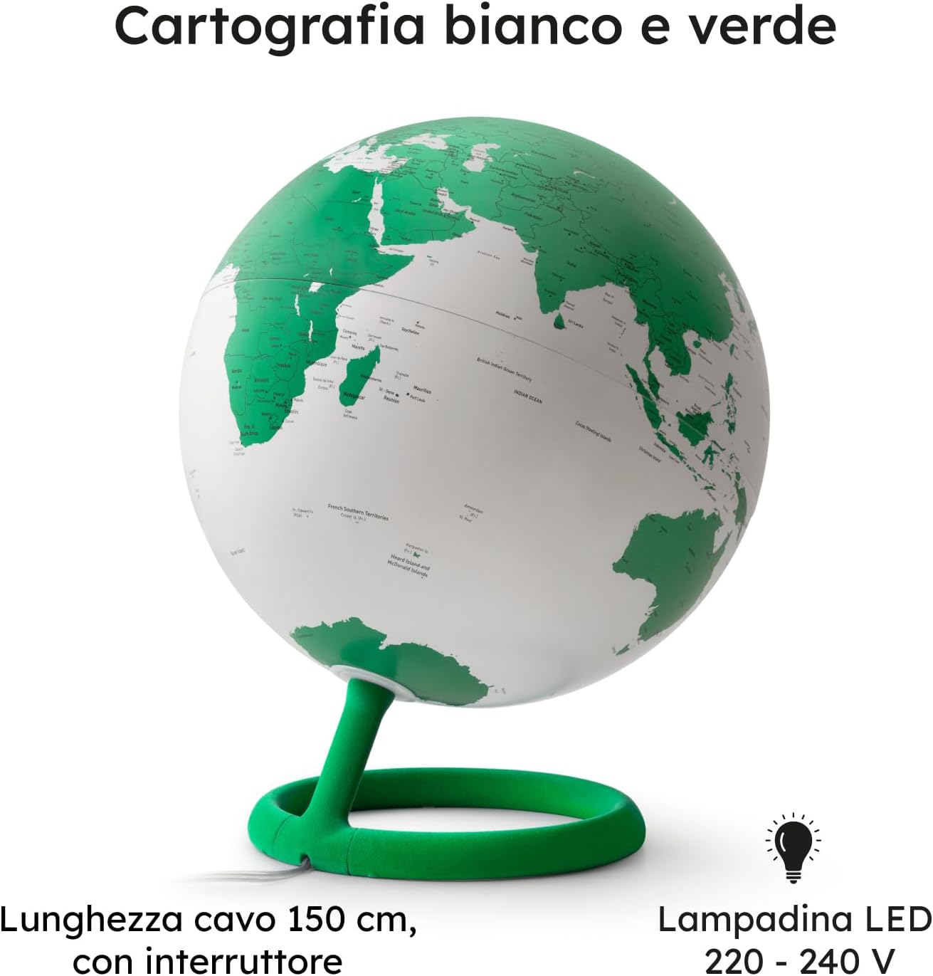 Design e alta qualità: la sfera luminosa Evolve Velvet unisce alta qualità e design, progettata dai famosi designer danesi Claus Jensen & Henrik Holbaek, dello Studio Tools Design. IDEA REGALO: il mappamondo è un'idea regalo perfetta per quasi ogni occasione, compleanni, Natale e altre occasioni speciali. Ideale anche per arredare studi, camere da letto o bar, aggiungendo un tocco di originalità con un pezzo accattivante. Cartografia politica in inglese: mappamondo dal design elegante ed internazionale, con lampadina interna a LED a basso consumo, costituisce sia un utile strumento di consultazione che un raffinato elemento d'ambiente. La lampadina può essere sostituita. Caratteristiche: il mappamondo elegante e decorativo, con base in nylon, rinforzata per una maggiore stabilità, con finitura floccata, sfera che ruota sul proprio asse. Diametro 30 cm e altezza 40 cm. Confezione in resistente scatola litografata. Made in Italy: la collezione Evolve Velvet di Atmosphere utilizza tecnologie avanzate e materiali di qualità, certificati per elevati standard di sicurezza e qualità, made in Italy Assistenza e garanzia cliente: Technodidactica offre elevati standard qualitativi investendo nella tua tranquillità. Per domande, contattateci sul sito ufficiale per la migliore soluzione.