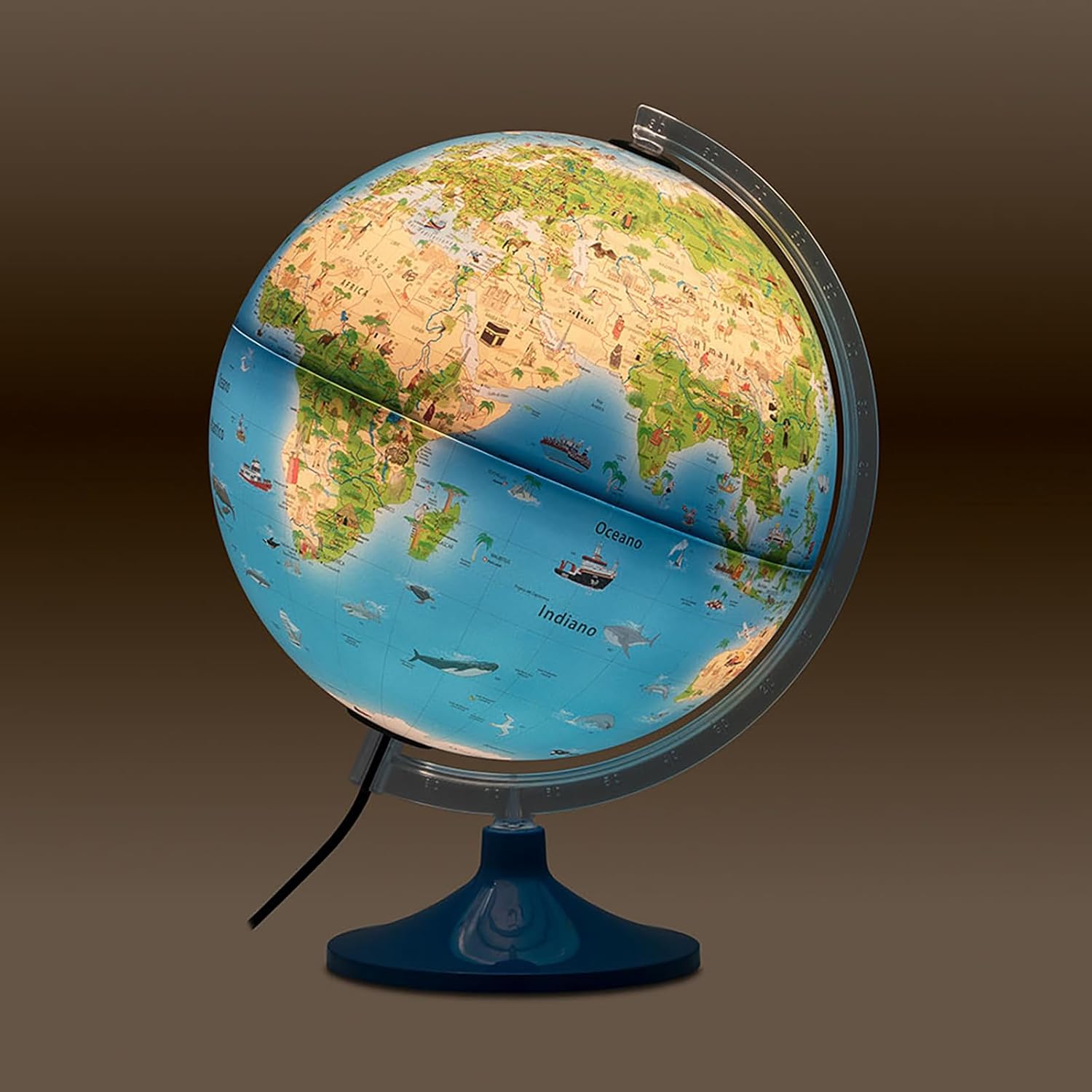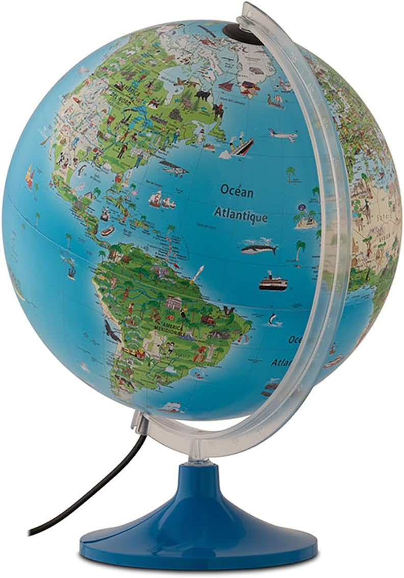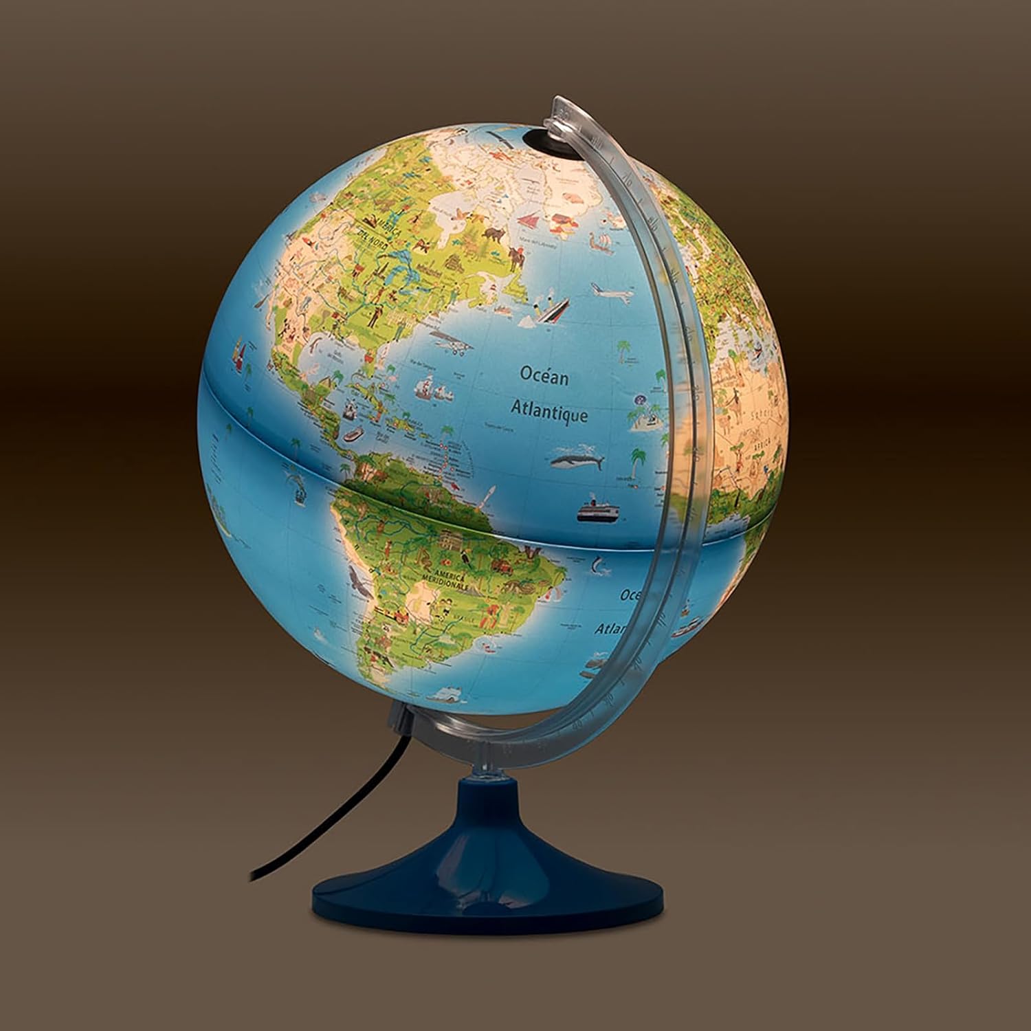 Mappamondo pensato per i più piccoli, con numerosi disegni rappresentanti animali e tradizioni popolari, per avvicinarsi alla geografia in modo divertente Dotato di meridiano graduato per rilevare la latitudine e foglio illustrativo con la spiegazione degli elementi illustrati presenti sulla sfera La sfera ruota attorno al proprio asse e la base in plastica antiurto garantisce un'ottima stabilità; diametro 30 cm e altezza 40 cm Dotata di lampadina LED interna che illumina il globo e crea un'atmosfera magica per scoprire e ammirare la Terra anche al buio La collezione Atmosphere Classic utilizza tecnologie all'avanguardia e materiali di qualità, certificati per elevati standard di sicurezza - Made in Italy I testi della nomenclatura sono in francese
