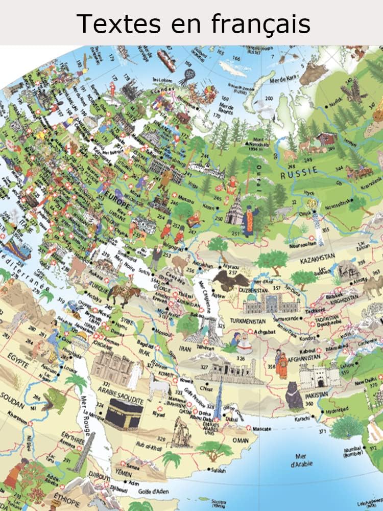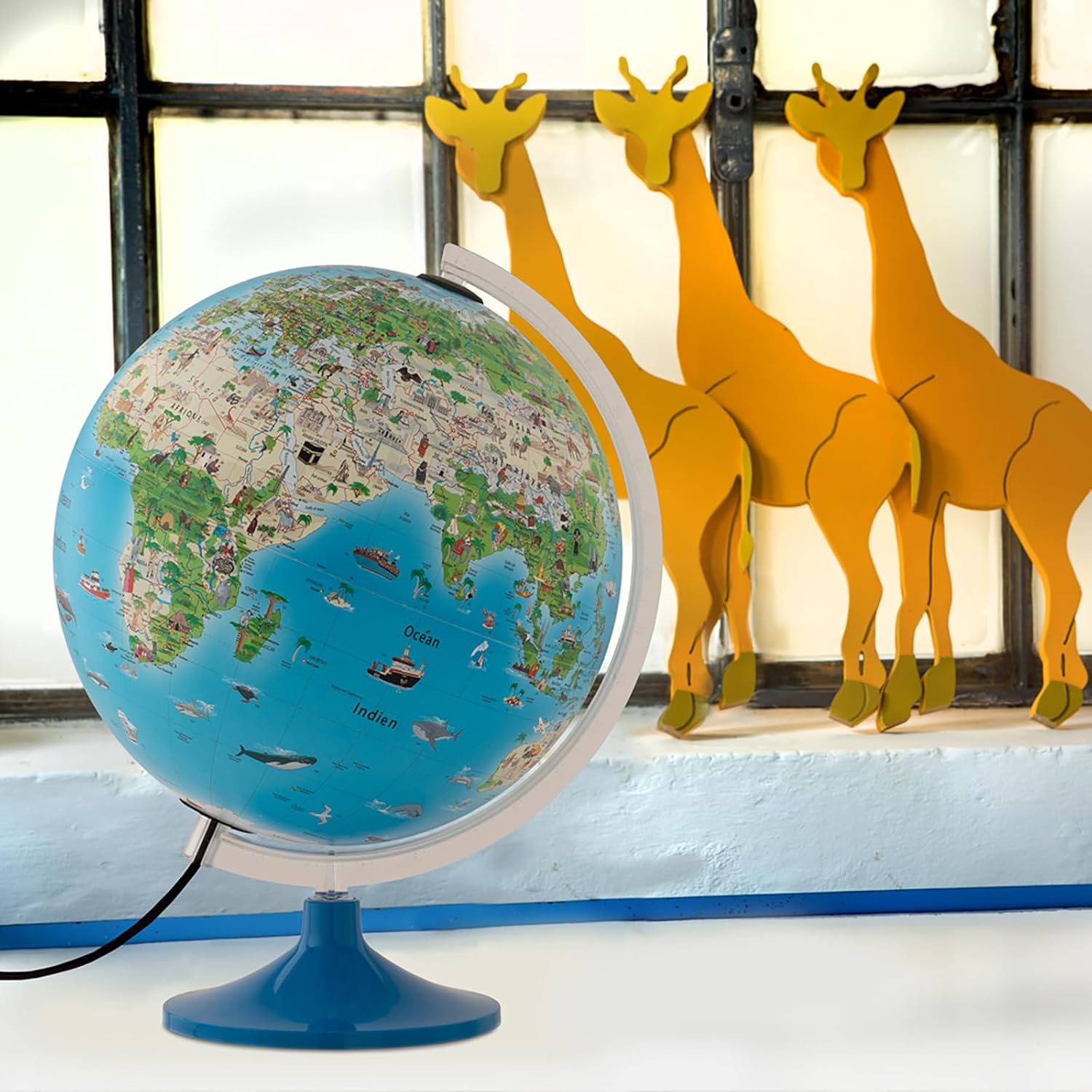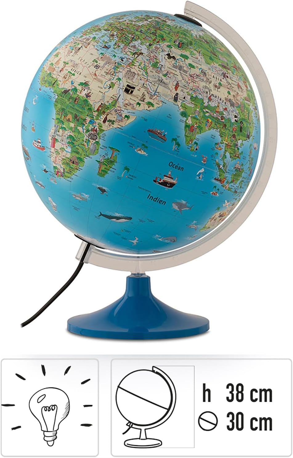 Mappamondo pensato per i più piccoli, con numerosi disegni rappresentanti animali e tradizioni popolari, per avvicinarsi alla geografia in modo divertente Dotato di meridiano graduato per rilevare la latitudine e foglio illustrativo con la spiegazione degli elementi illustrati presenti sulla sfera La sfera ruota attorno al proprio asse e la base in plastica antiurto garantisce un'ottima stabilità; diametro 30 cm e altezza 40 cm Dotata di lampadina LED interna che illumina il globo e crea un'atmosfera magica per scoprire e ammirare la Terra anche al buio La collezione Atmosphere Classic utilizza tecnologie all'avanguardia e materiali di qualità, certificati per elevati standard di sicurezza - Made in Italy I testi della nomenclatura sono in francese