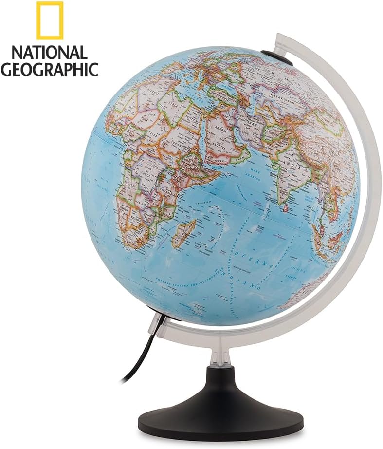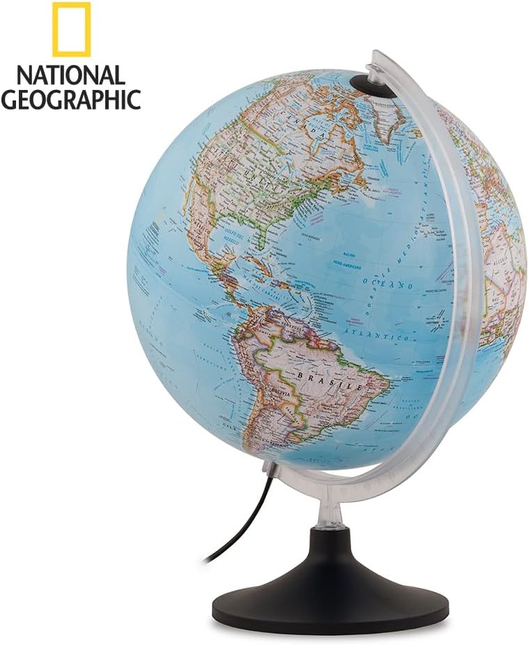 Mappamondo classico ed elegante, con meridiano graduato in plastica trasparente e sfera che ruota sul proprio asse, diametro 30 cm Cartografia ufficiale National Geographic Classic, ricca di informazioni sulla geografia politica e fisica e testi accurati e attuali in lingua Italiana Grazie alla lampadina LED interna in dotazione, si trasforma da utile strumento di apprendimento a suggestiva lampada di atmosfera Raffinata realizzazione della sfera, senza saldature sulla superficie e paesi evidenziati da confini colorati per un rapido riconoscimento I mappamondi Tecnodidattica fanno uso di tecnologie avanzate e di materiali pregiati, certificati per gli alti standard di sicurezza e qualità Made in Italy La lampadina può essere sostituita. Questo è un prodotto contenitore. I prodotti contenitori sono apparecchi di illuminazione che possono essere smontati per un controllo separato della sorgenti luminosa contenuta.