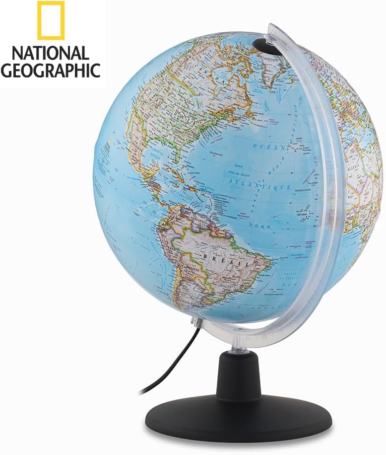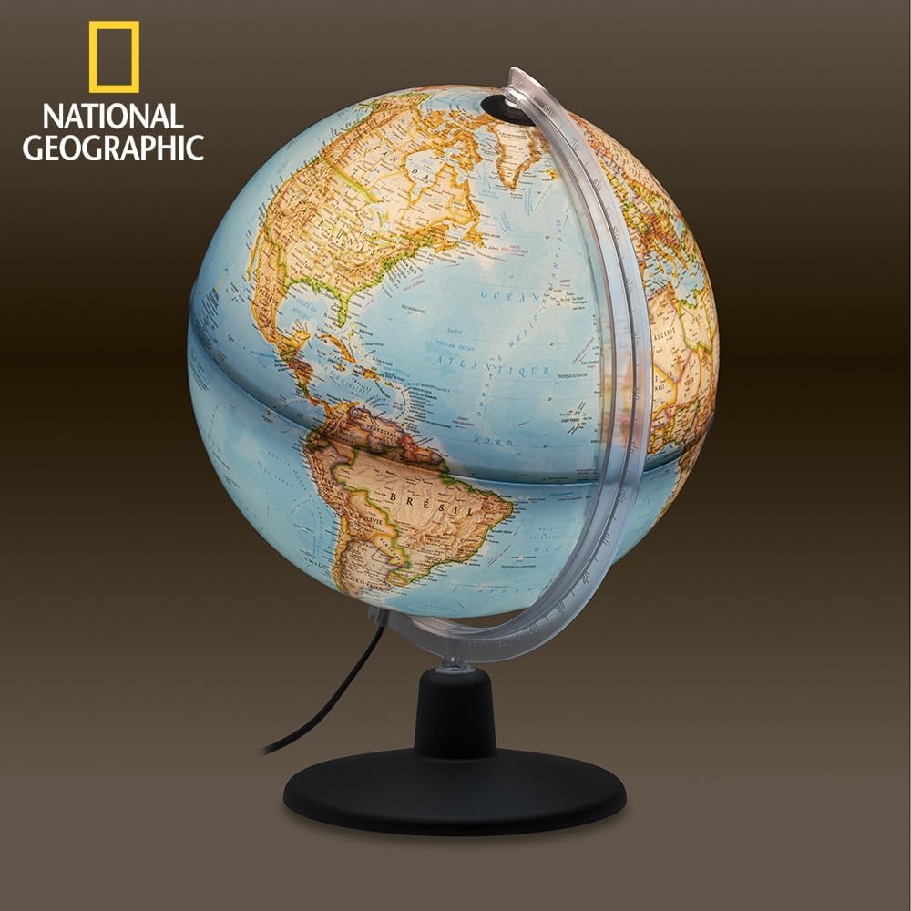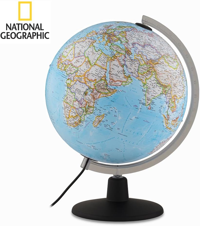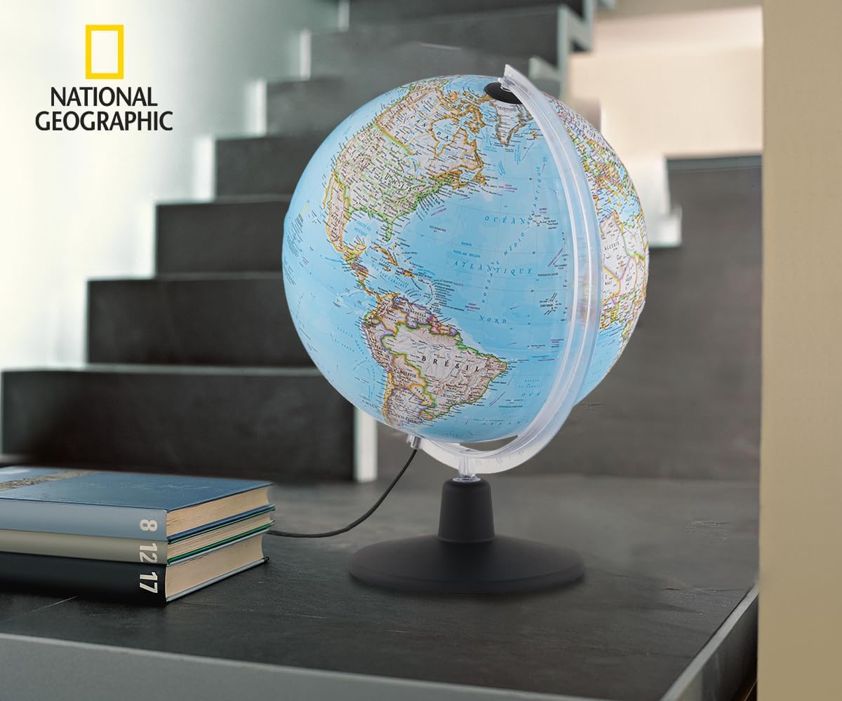 Classico ed elegante mappamondo in plastica antiurto, diametro 30 cm e sfera rotante sul proprio asse Cartografia ufficiale National Geographic Classic, ricca di informazioni sulla geografia politica e fisica; i testi, precisi e aggiornati, sono in francese Grazie alla lampadina LED interna inclusa, questo globo terrestre luminoso si trasforma da utile strumento di apprendimento in una lampada d'ambiente Meridiano graduato e trasparente per una facile identificazione della latitudine del globo e del paese evidenziato da bordi colorati per una rapida localizzazione I mappamondi Tecnodidattica utilizzano tecnologie avanzate e materiali di alta qualità, realizzati secondo gli standard di sicurezza e qualità Made in Italy