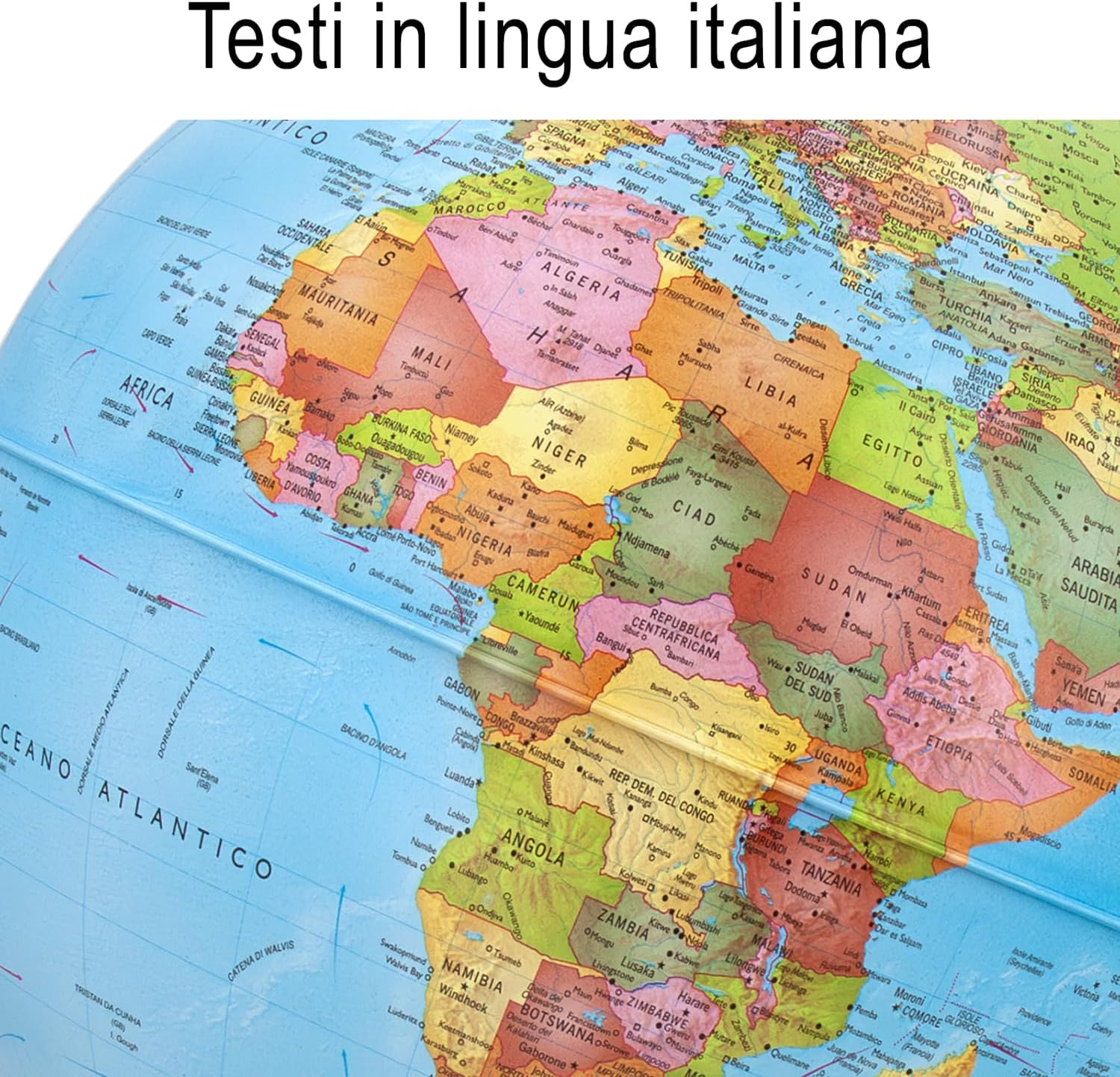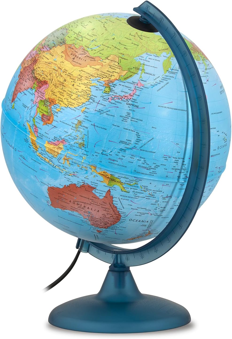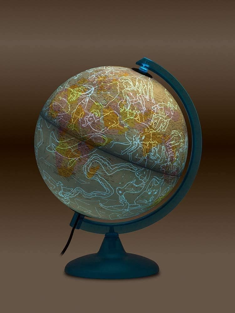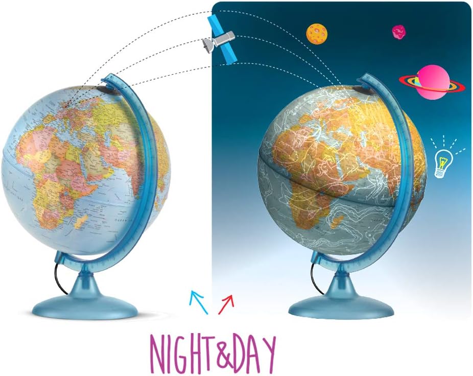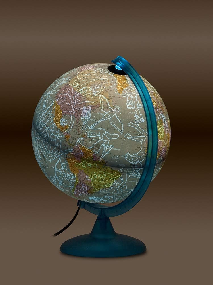 CARTOGRAFIA POLITICA/COSTELLAZIONI: mappamondo luminoso con un design classico, con la luce LED accesa l'accurata carografia Politica si trasforma in Costellazioni celesti rendendo l'apprendimento geografico un'esperienza coinvolgente sviluppando le competenze cognitive dei più giovani. IDEA REGALO: il mappamondo con doppia cartografia è una perfetta idea regalo per tutte le occasioni, compleanni, Natale e altri momenti speciali. Ideale anche per decorare studi, stanze o bar, aggiungendo un tocco di originalità con un prezzo accattivante. DECORAZIONE & ALTA QUALITÀ: il mappamondo luminoso, unisce alta qualità e design decorativo impreziosendo l’ambiente in cui viene collocato; grazie alla lampadina LED interna può essere utilizzato anche come lampada per la cameretta. CARATTERISTICHE: Il mappamondo è dotato di un meridiano graduato per individuare la latitudine. La sfera ruota agevolmente intorno al proprio asse, mentre la base in materiale plastico azzurro garantisce resistenza. Diametro: 25 cm. Confezione in scatola illustrata. MADE IN ITALY: L'eccellenza artigianale italiana si fonde con l'innovazione nei mappamondi Tecnodidattica, offrendo sicurezza, qualità e stile ineguagliabili. ASSISTENZA CLIENTI e GARANZIA: Tecnodidattica offre elevati standard qualitativi, investendo nella tua tranquillità. Per domande, contattaci sul sito ufficiale per la soluzione migliore.