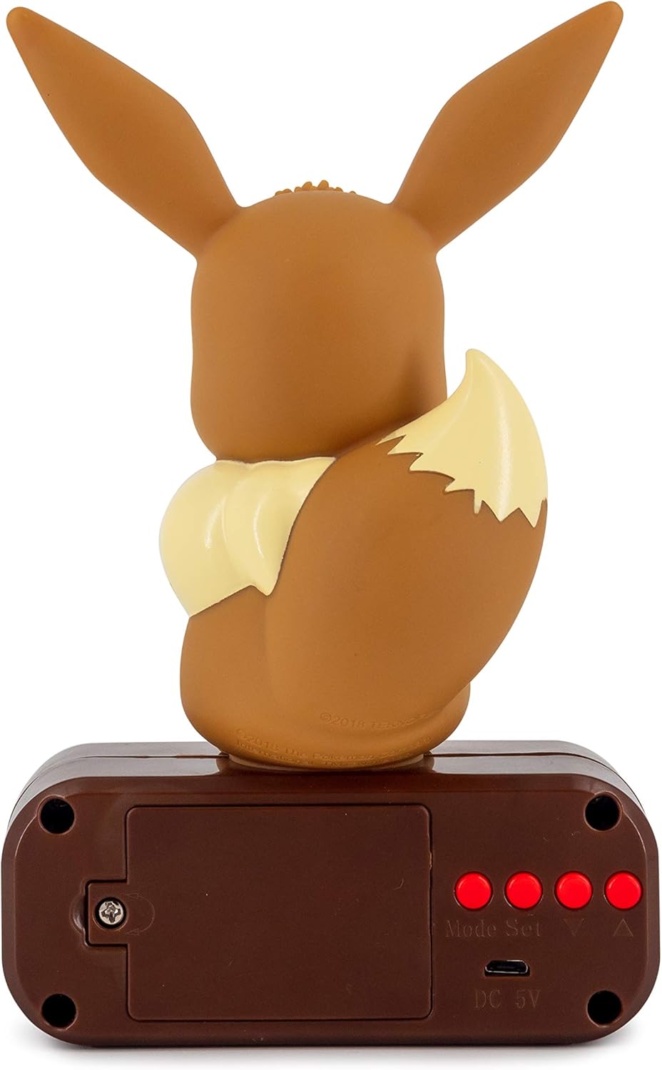 Una sveglia per catturarli tutti! Con la sveglia EEVEE sarete i primi ad alzarvi e a catturare tutti i vostri pokémon preferiti. Il diffusore di luce a LED diffonde una luce piacevole e il display retroilluminato è dotato di indicazione digitale di ora, data e temperatura ambiente. La funzione di allarme programmabile è inclusa. Questa sveglia funziona con 3 batterie AAA o tramite USB/micro USB (cavo incluso). La sveglia EEVEE è un prodotto ufficiale di THE POKÉMON COMPANY.