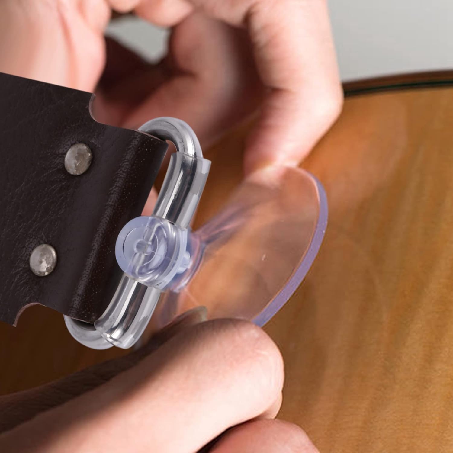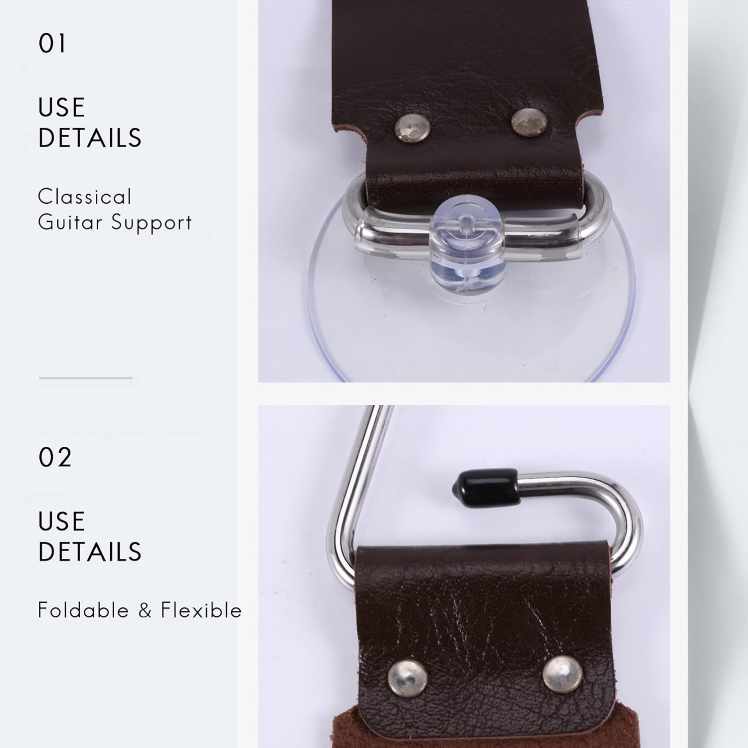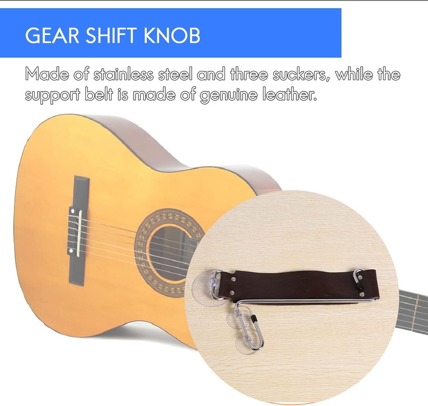Supporta la tua chitarra in modo semplice. Pieghevole e flessibile. Configurazione standard tre ventose Inoltre. Realizzato in acciaio inossidabile e tre ventose, mentre la cintura di supporto è realizzata in vera pelle. extra presentando due piccoli polloni.