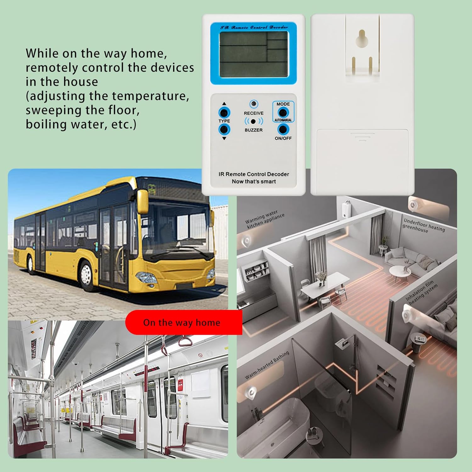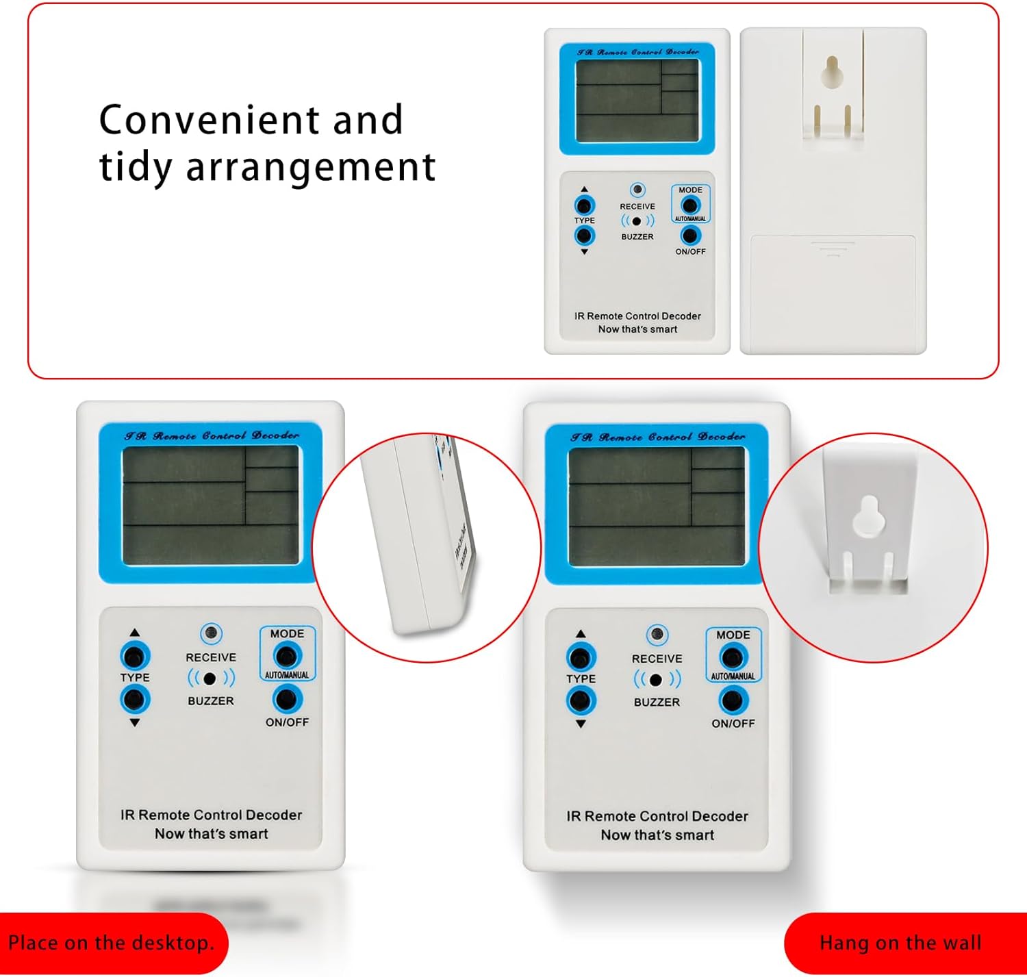 Il tester per telecomandi TV a infrarossi è la soluzione definitiva per decodificare e testare i segnali a infrarossi, garantendo la compatibilità con vari telecomandi. Da utilizzare nei negozi di elettronica, nelle officine di riparazione o a casa, il design compatto e portatile garantisce un facile trasporto e facilità d'uso in vari ambienti. Con il suo display LED e una lunga durata della batteria, questo tester per telecomandi a infrarossi non solo migliora la comodità dell'utente, ma mantiene anche gli standard, fornendo prestazioni affidabili per tutte le esigenze di controllo remoto. Ideale per rivenditori e appassionati. Questo tester per decodificatori aiuta a identificare i modelli di telecomandi compatibili in modo da poter consigliare alternative quando alcuni telecomandi sono esauriti. Con molteplici modalità come apprendimento, test e visualizzazione, questo dispositivo fornisce segnali a infrarossi, forme d'onda e dati in tempo reale, rendendolo uno strumento essenziale per analizzare le funzioni del controllo remoto