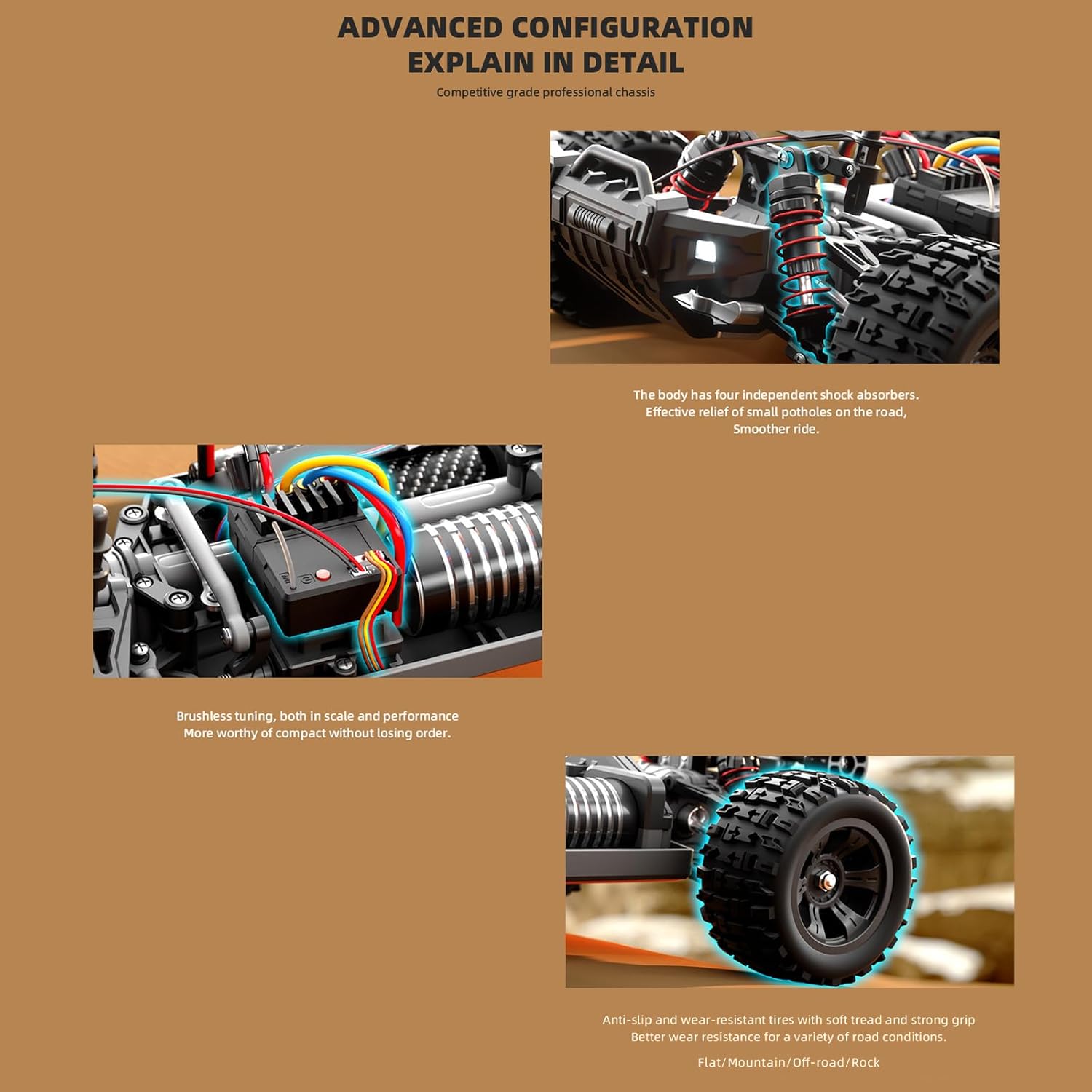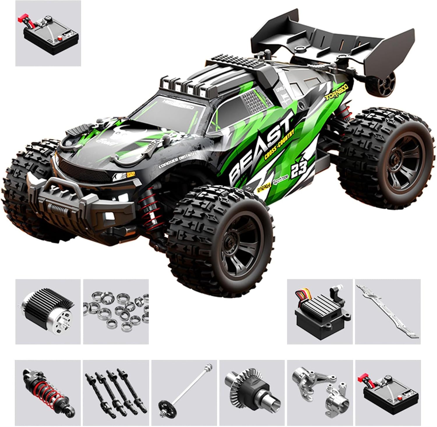 Plastica resistente a cadute e cadute, illuminazione fredda e forma unica La squisita fattura rende questo telecomando crawler auto estremamente potente Grande capacità della batteria, durata della batteria, soddisfazione della tua esperienza di gioco Il controllo radio proporzionale proporzionale a 2,4 GHz può fornire un controllo stabile Come una vera macchina, un'eccellente flessibilità, rendono questa macchina molto popolare tra i bambini