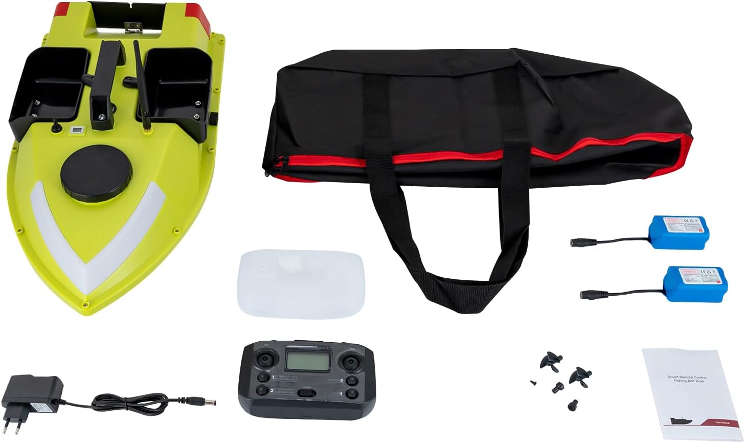 Pesca efficiente: l'esca è azionata da un doppio motore 390 e ha una potenza di 52W, una velocità massima di 10.000 giri/min, una velocità di navigazione di 5,91 ft/s e 99 punti di pesca. Inoltre, la scatola tripla offre fino a 4,4 libbre di spazio per mais, esche ed esche sintetiche per fornire un'esperienza di pesca precisa ed efficiente per il tuo posizionamento Luce notturna: con luce di navigazione notturna a LED, una striscia luminosa regolabile in sette colori (blu, bianco, rosso, verde, viola, arancione, giallo) che può essere controllata manualmente commutando la striscia luminosa per manipolare l'effetto del flusso, anche se si pesca di notte, è possibile osservare chiaramente la vostra barca esca e riconoscere la direzione in tempo Design premuroso: lo scafo Streamline è completamente chiuso e impermeabile, il che rende la barca da pesca più stabile, mentre il coperchio dell'elica impedisce che l'esca venga catturata da erba o piante. Inoltre, la correzione automatica, la disconnessione e il ritorno automatico a bassa corrente assicurano un utilizzo sicuro in vaste acque e il telecomando ti avvisa automaticamente quando la batteria è bassa Libera le mani: questo ingegnoso telecomando può raggiungere una portata di circa 1968 piedi utilizzati per soddisfare le tue esigenze, mentre lo schermo LCD ti consente di osservare il livello di potenza, il segnale GPS, il promemoria in posizione, le luci di navigazione navale, il punto di ritorno, il punto di posizione, la distanza e una varietà di pulsanti precisi, scooter e altro ancora, che ti aiuteranno a impostare, tornare, posizionare e altro ancora Lunga durata della batteria: è dotato di 2 batterie agli ioni di litio da 5200 mAh, ogni batteria dura 90 minuti dopo una carica completa, abbastanza per pescare all'aperto 1 giorno