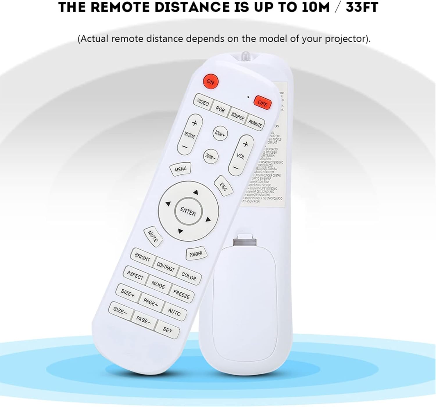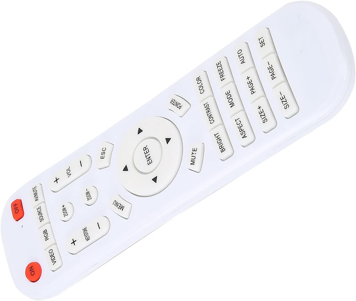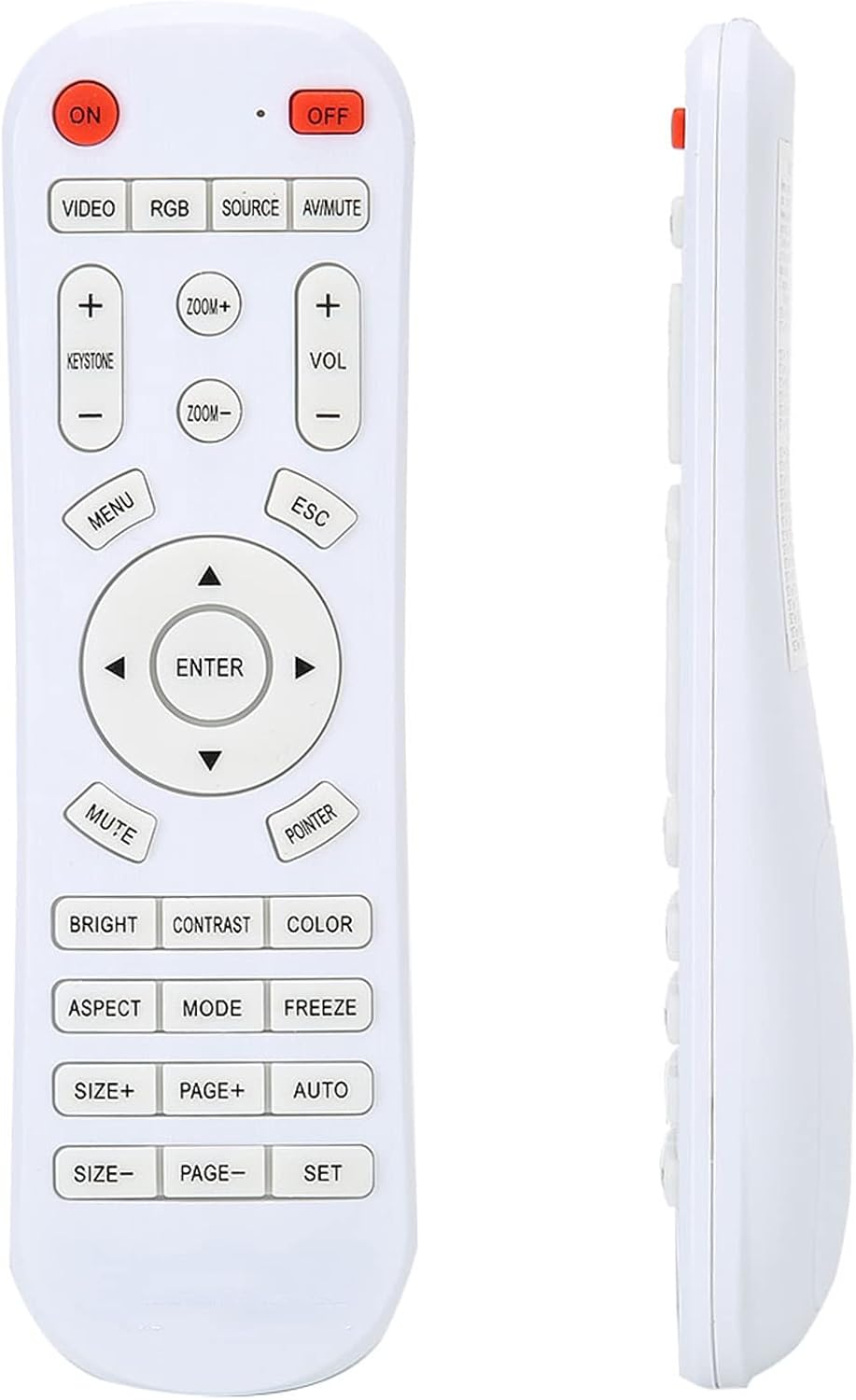 [Distanza remota estesa] Con una portata fino a 10 m / 33 piedi, questo telecomando offre un comodo utilizzo a distanza. [Installazione semplice] Basta inserire 2 batterie AAA (non incluse) e seguire le istruzioni di configurazione per iniziare a utilizzare il telecomando. [Controllo efficiente] Goditi il controllo del tuo proiettore con questo telecomando bianco, che offre un'esperienza semplice. [Compatibilità] Progettato per proiettori, questo telecomando è adatto a vari modelli (fare riferimento all'adesivo sul retro per la compatibilità). [Elevata durata] Realizzato in materiale ABS, questo telecomando è indossabile e robusto, garantendo un uso duraturo.